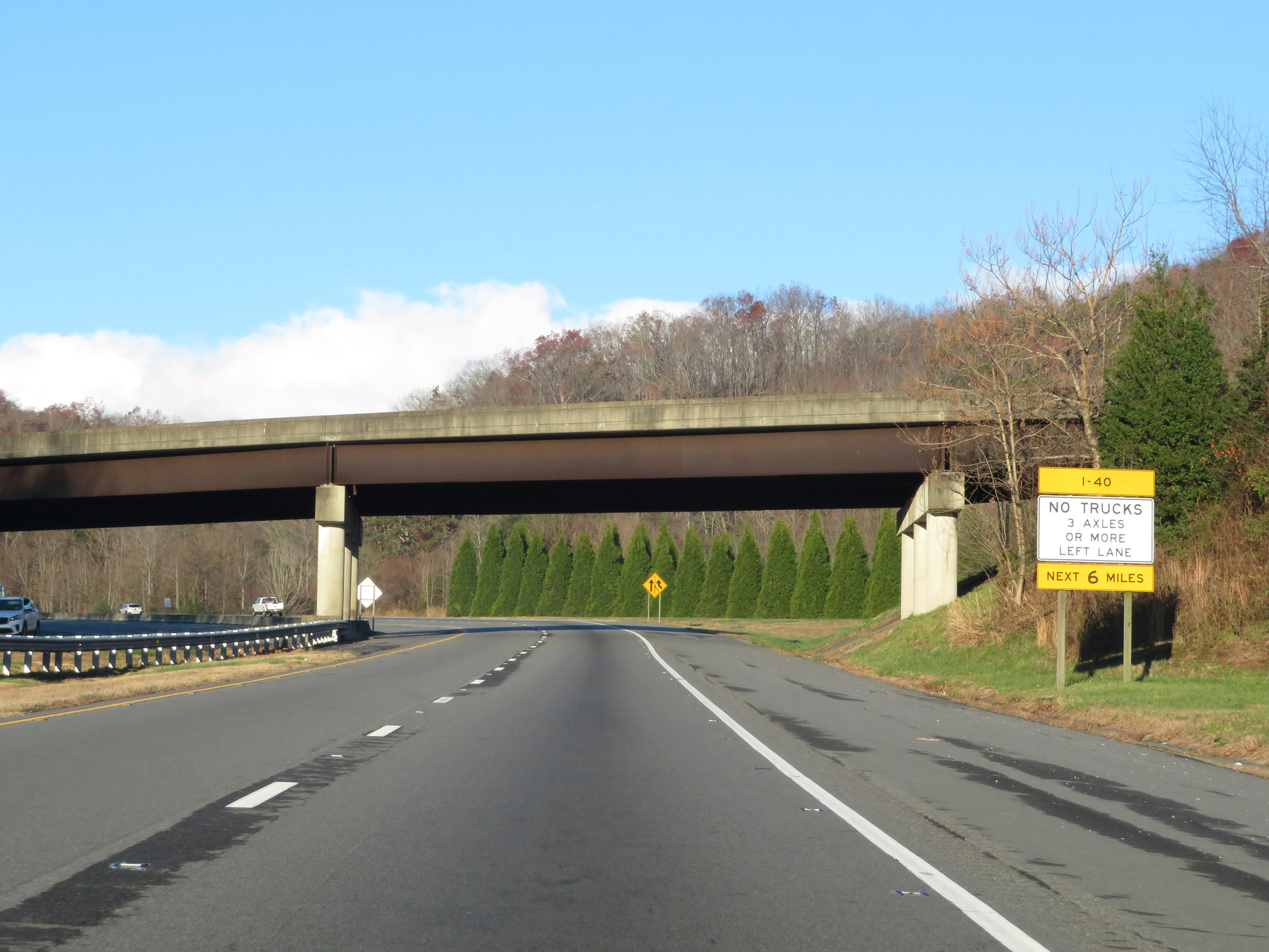 As Interstate 40 West reaches the bottom of Old Fort Mountain, this sign states that the truck lane restrictions come to an end. (Photo taken 12/5/20). |
