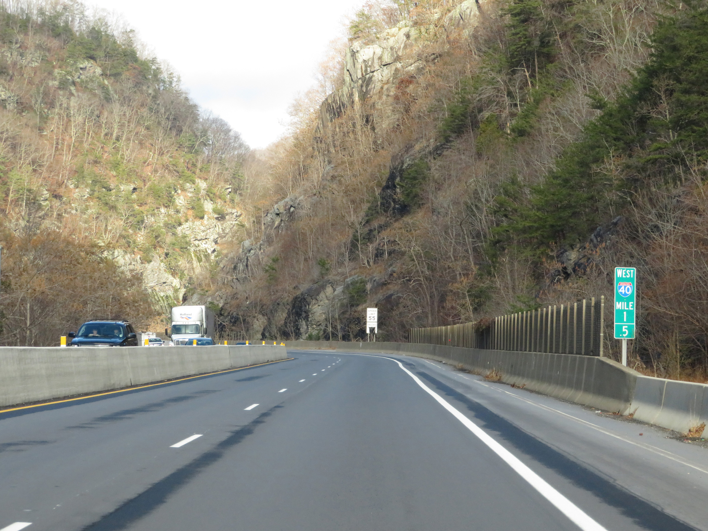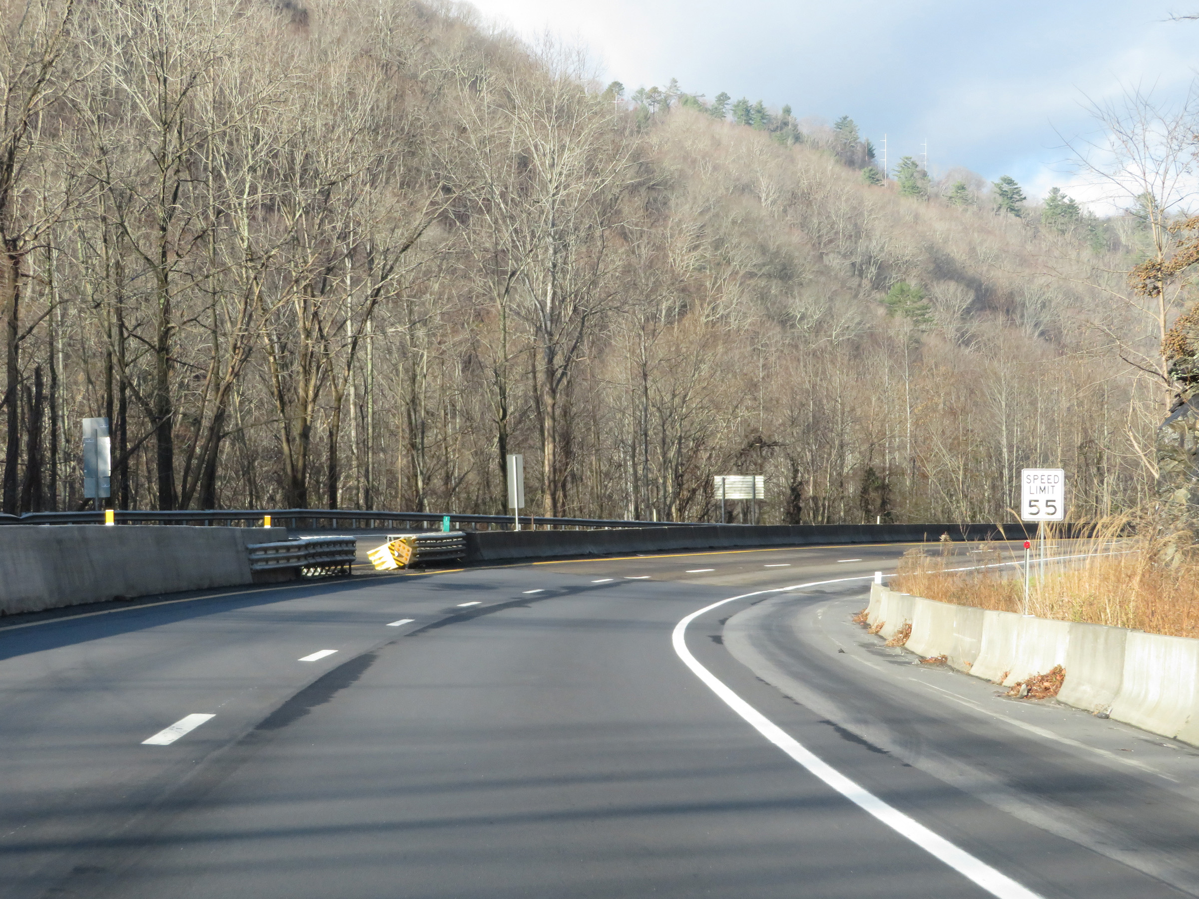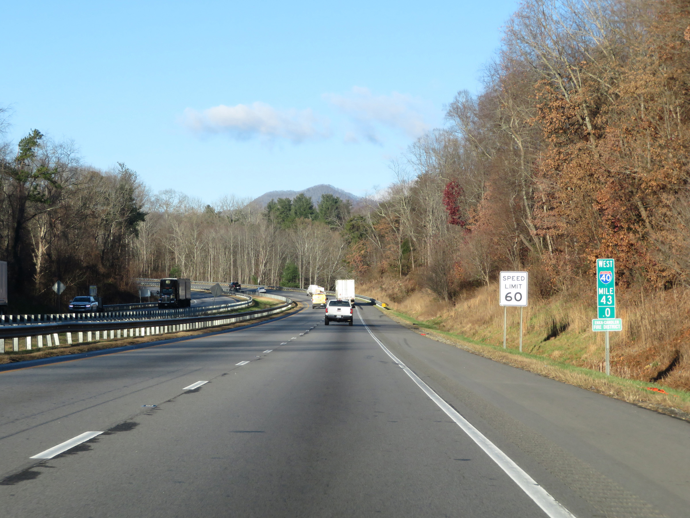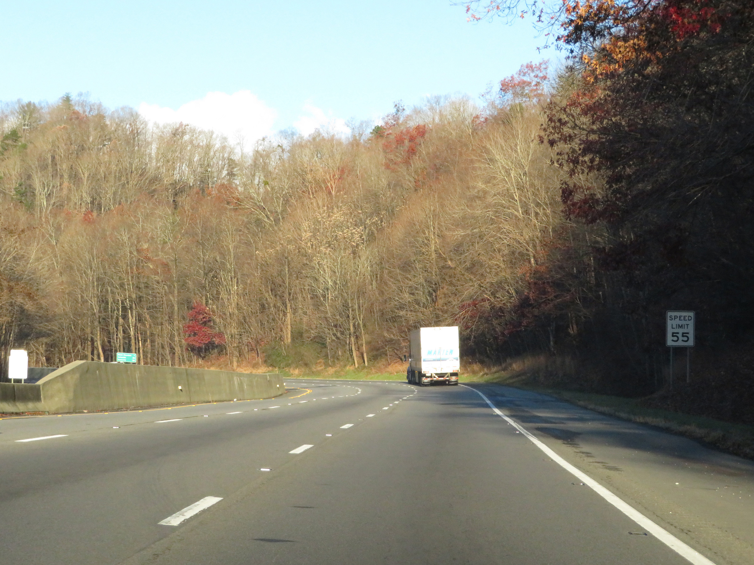 The speed limit remains 55 mph on Interstate 40 West as it descends from the summit of Old Fort Mountain. (Photo taken 12/5/20). |