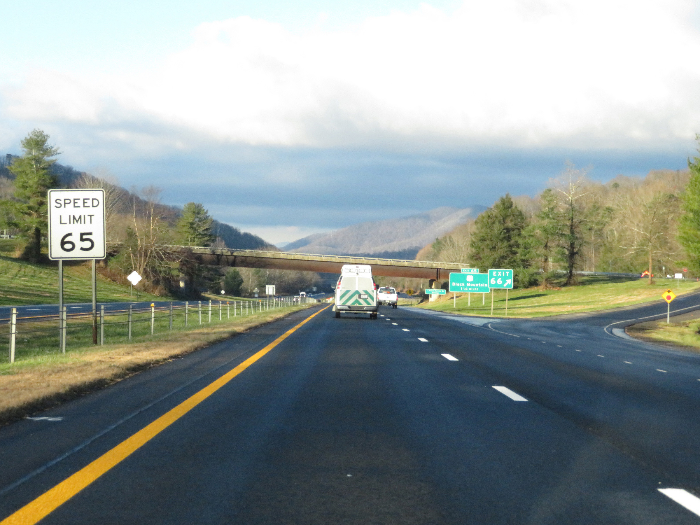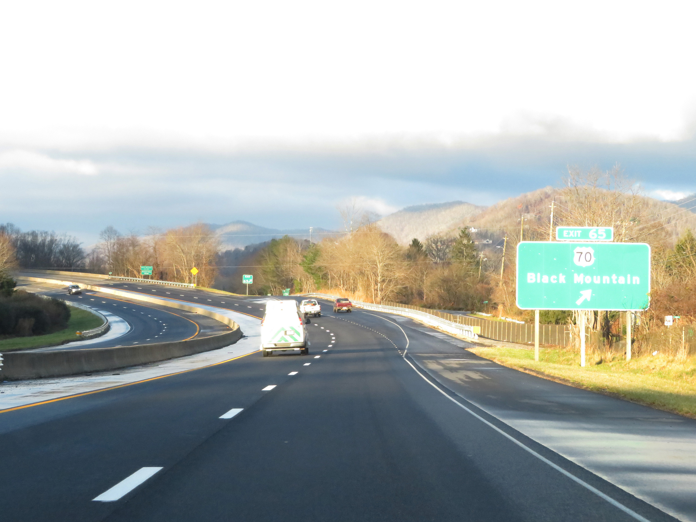 Interstate 40 West at Exit 65: US 70 - Black Mountain (Photo taken 12/5/20). |