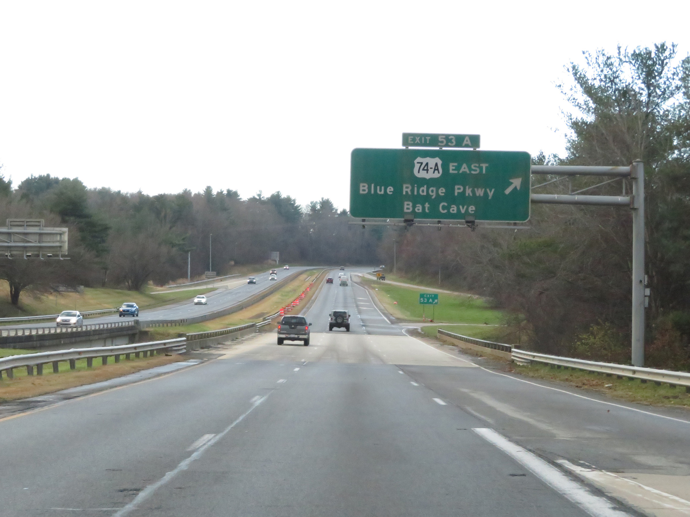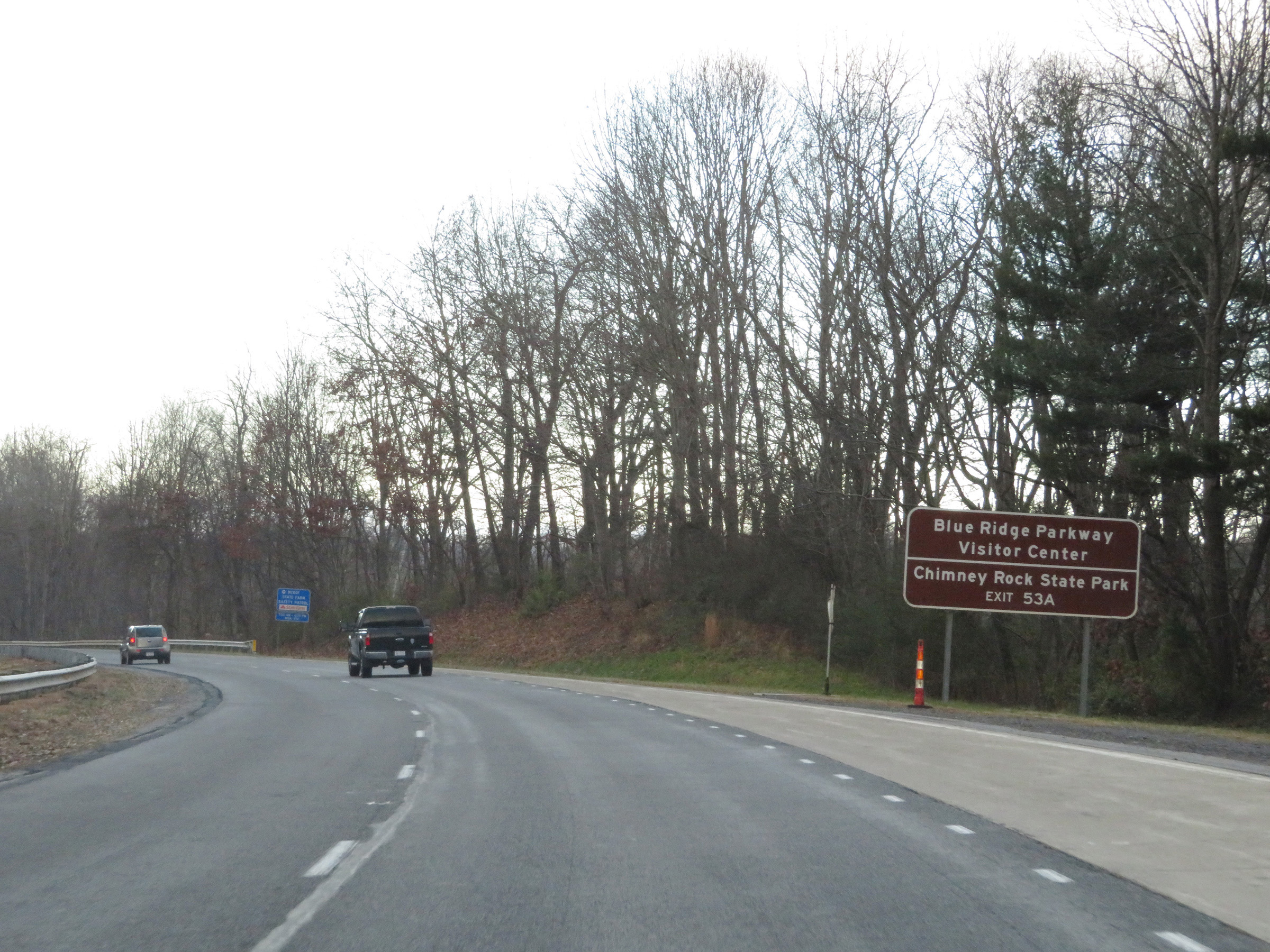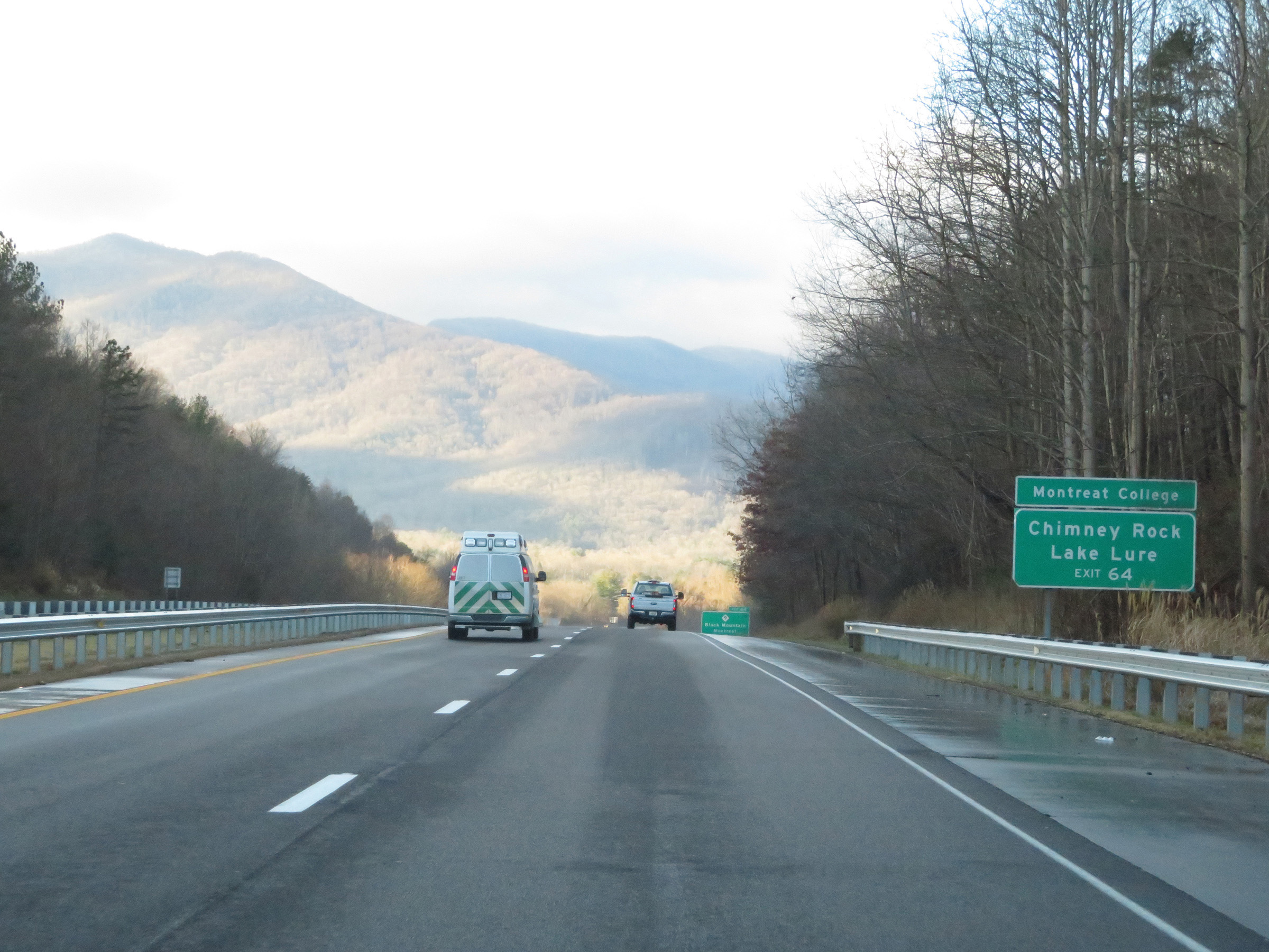 Take Exit 64 to Montreat College, Chimney Rock, and Lake Lure. (Photo taken 12/5/20). |
