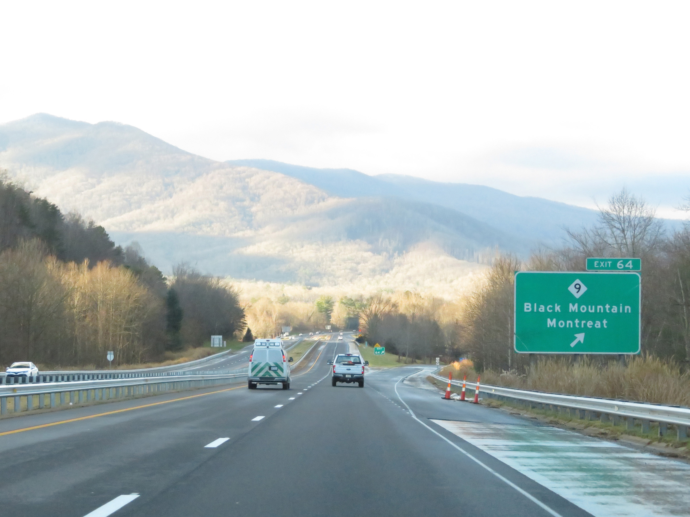 Interstate 40 West at Exit 64: NC 9 - Black Mountain / Montreat (Photo taken 12/5/20). |