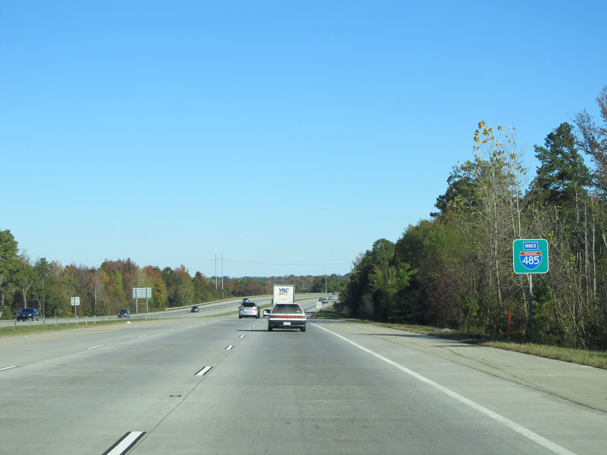 Interstate 485 Inner Loop (North) at mile marker 21. (Photo taken 11/12/16). |
