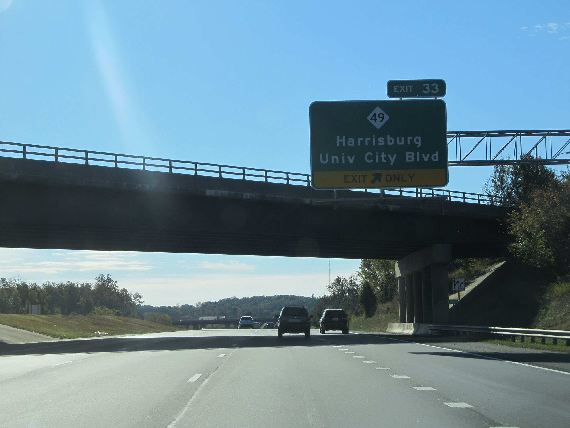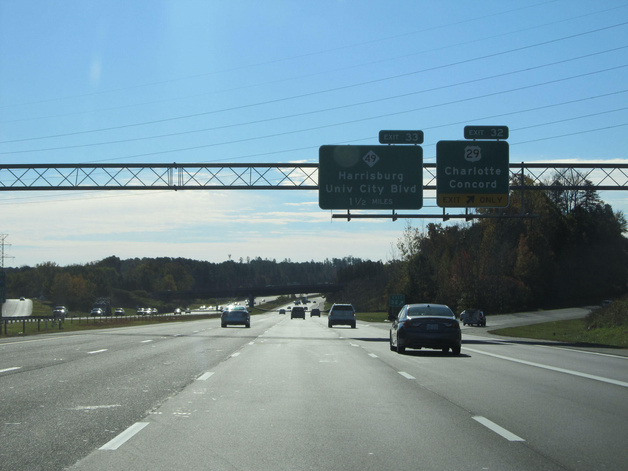 Interstate 485 Inner Loop (East) at Exit 33: NC 49 - Harrisburg / University City Blvd (Photo taken 11/12/16). |