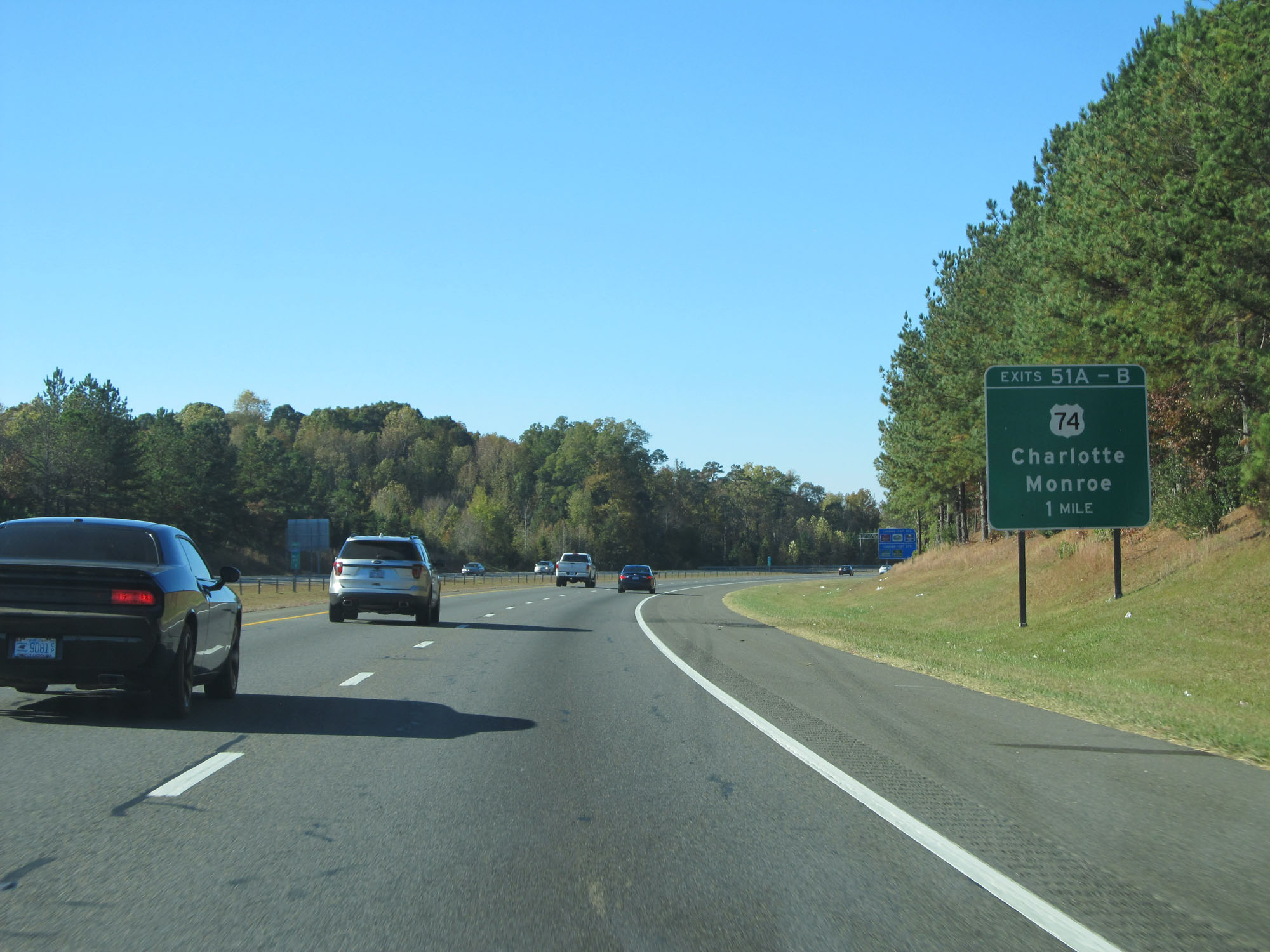 Interstate 485 Inner Loop (South) at Exit 51B: US 74 East - Monroe (Photo taken 11/12/16). |