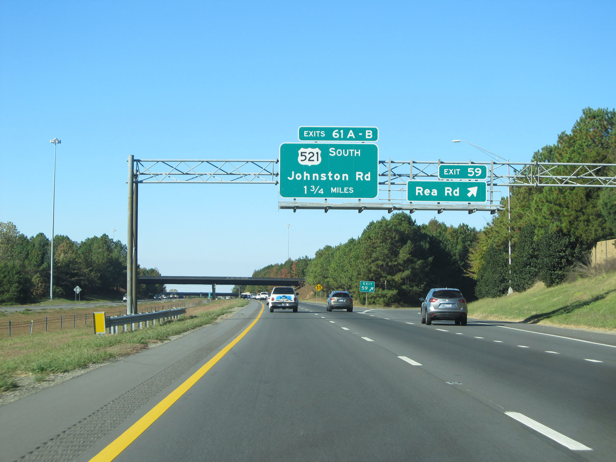 Interstate 485 Inner Loop (West) at Exit 59: Rea Rd (Photo taken 11/12/16). |