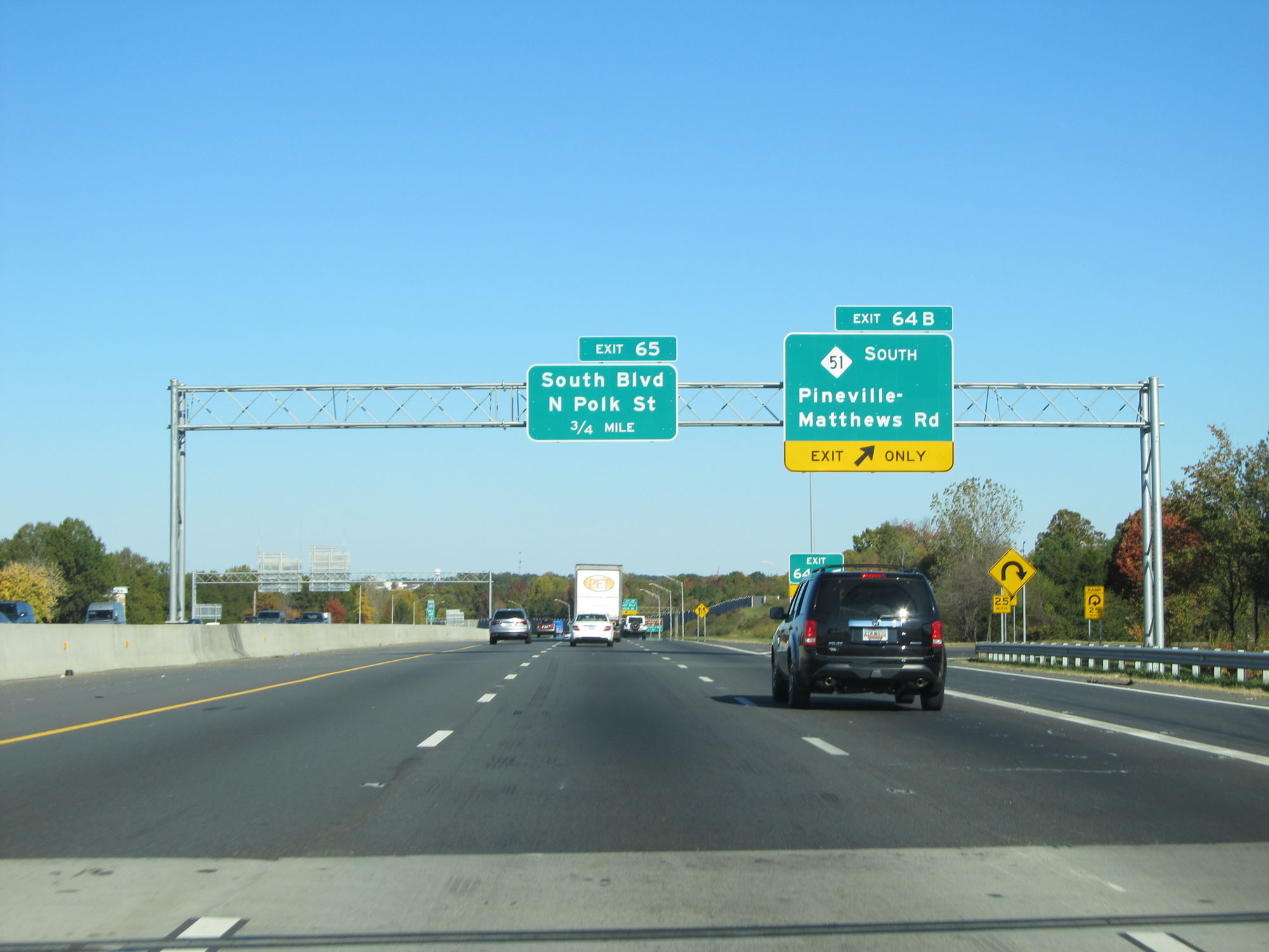 Interstate 485 Inner Loop (West) at Exit 65: South Blvd / N Polk St (Photo taken 11/12/16). |