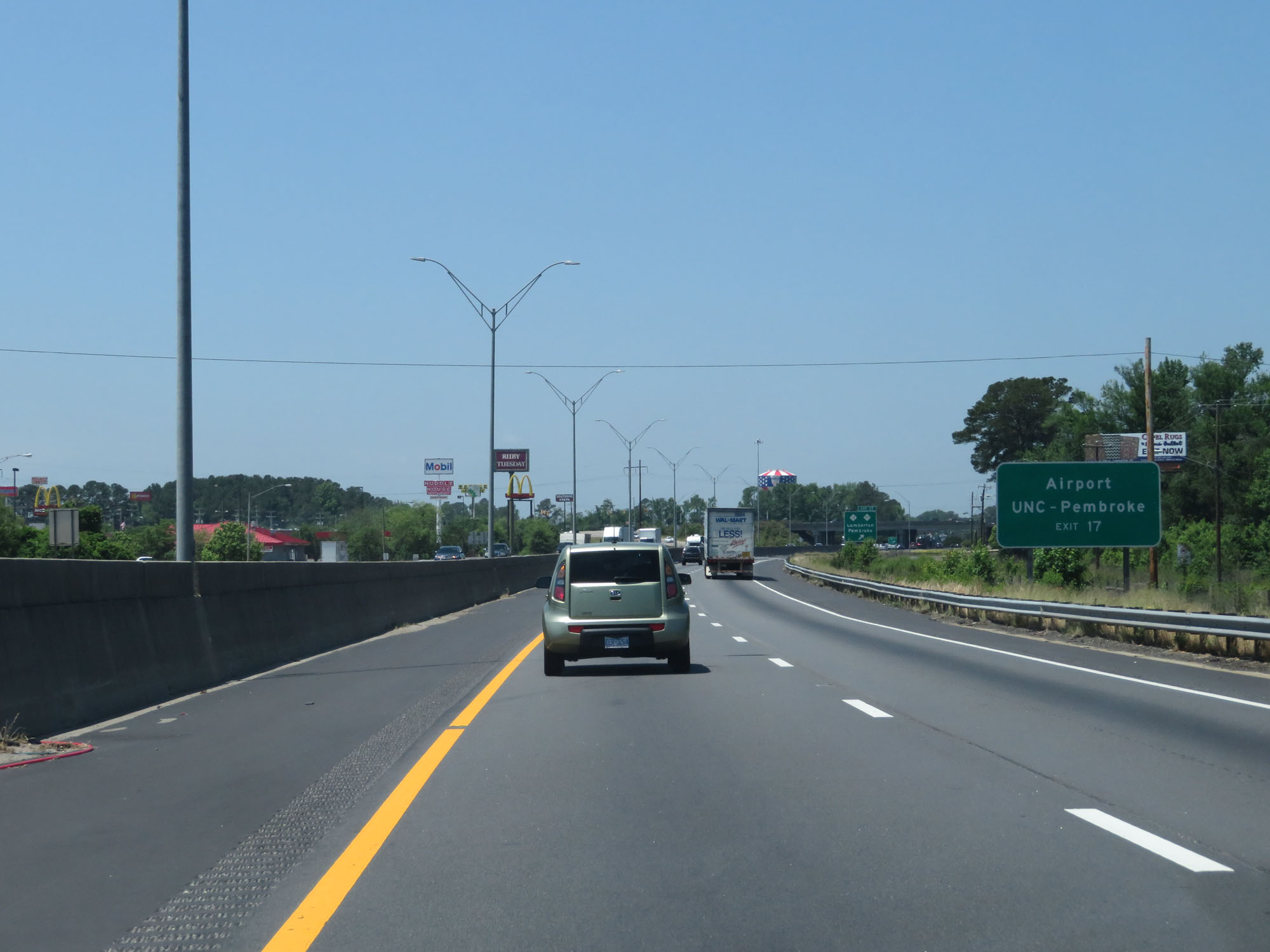 Take Exit 17 to the Airport and UNC Pembroke. (Photo taken 5/20/17). |