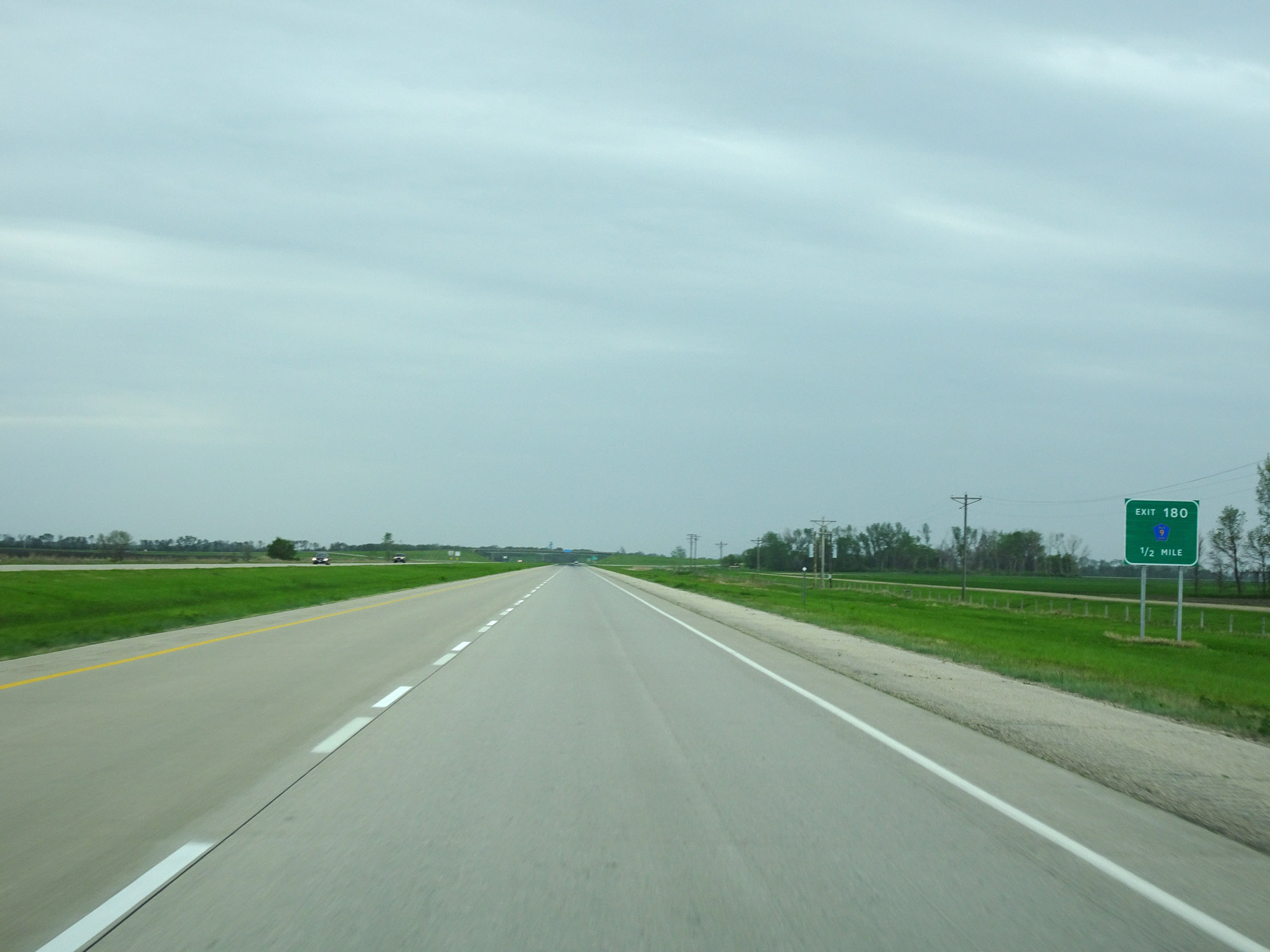Interstate 29 South approaching Exit 180 - 1/2 mile. (Photo taken 5/22/16). |