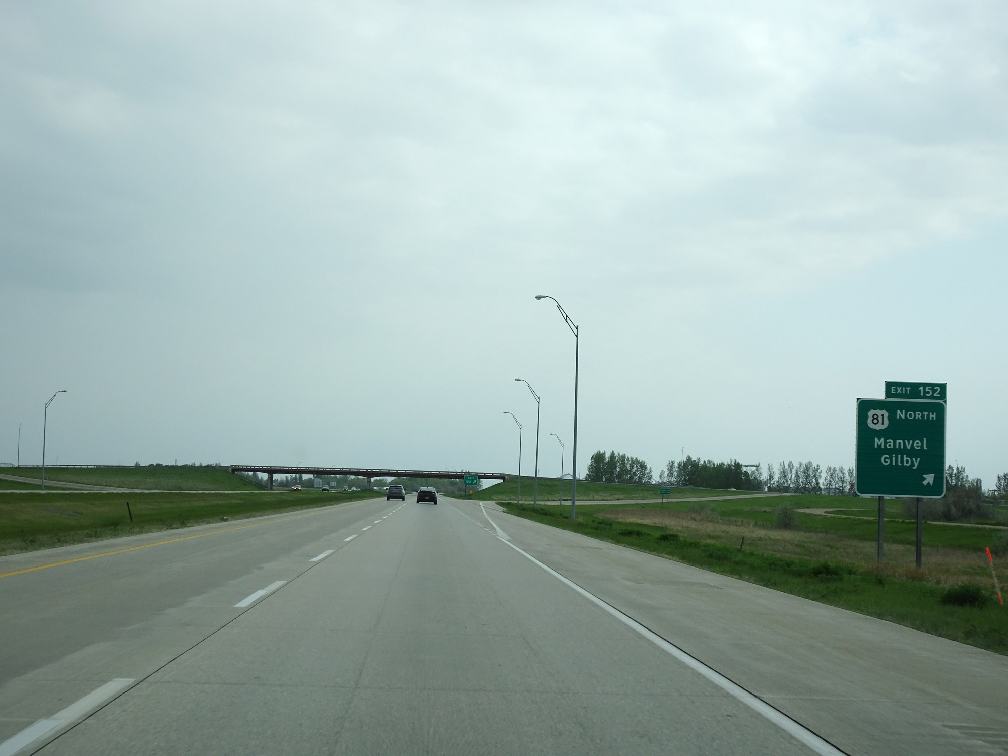 Interstate 29 South at Exit 152: US 81 North - Manvel / Gilby (Photo taken 5/22/16). |