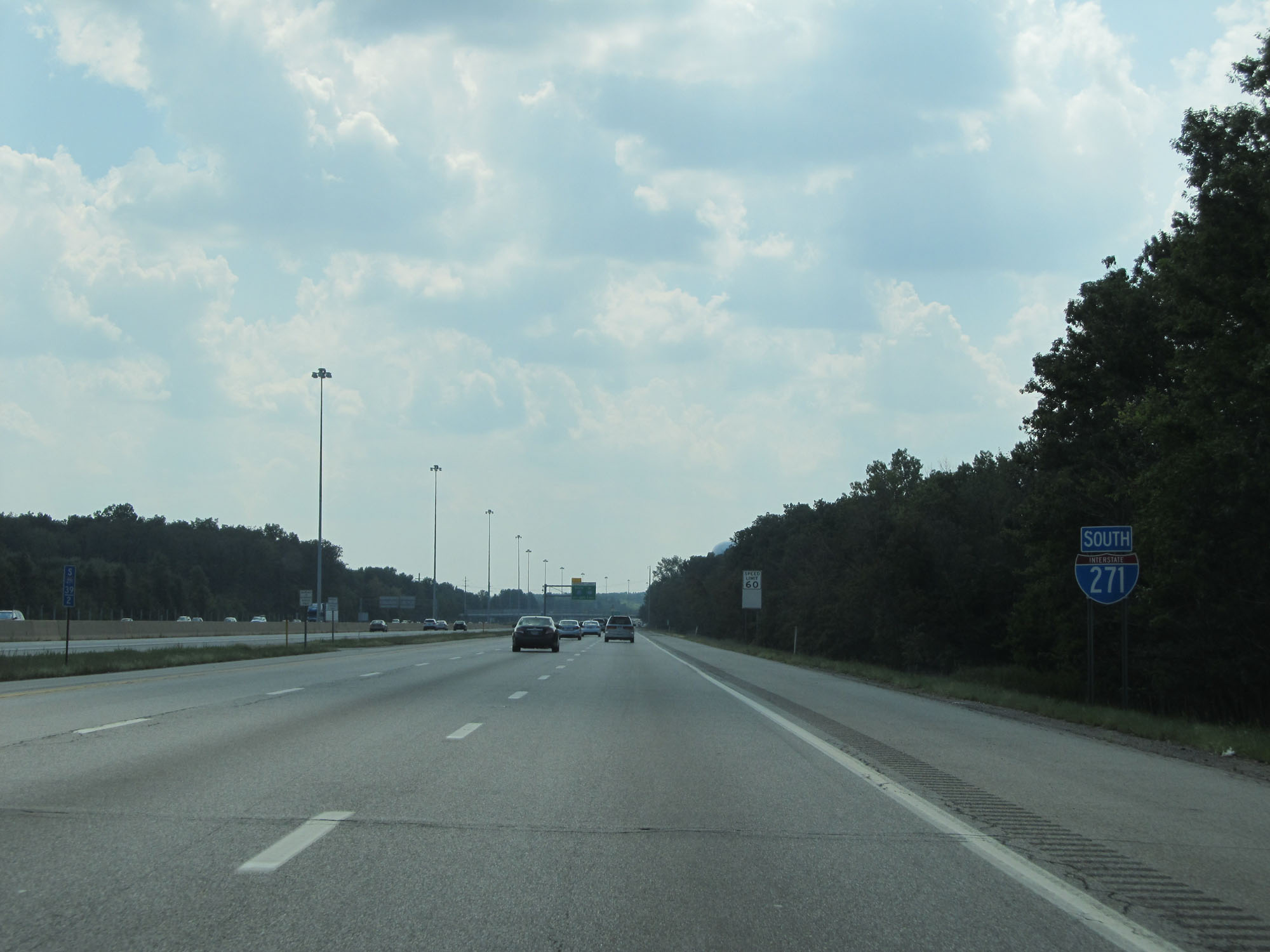 The speed limit on Interstate 271 South starts out at 60 mph for all traffic. (Photo taken 9/7/15). |