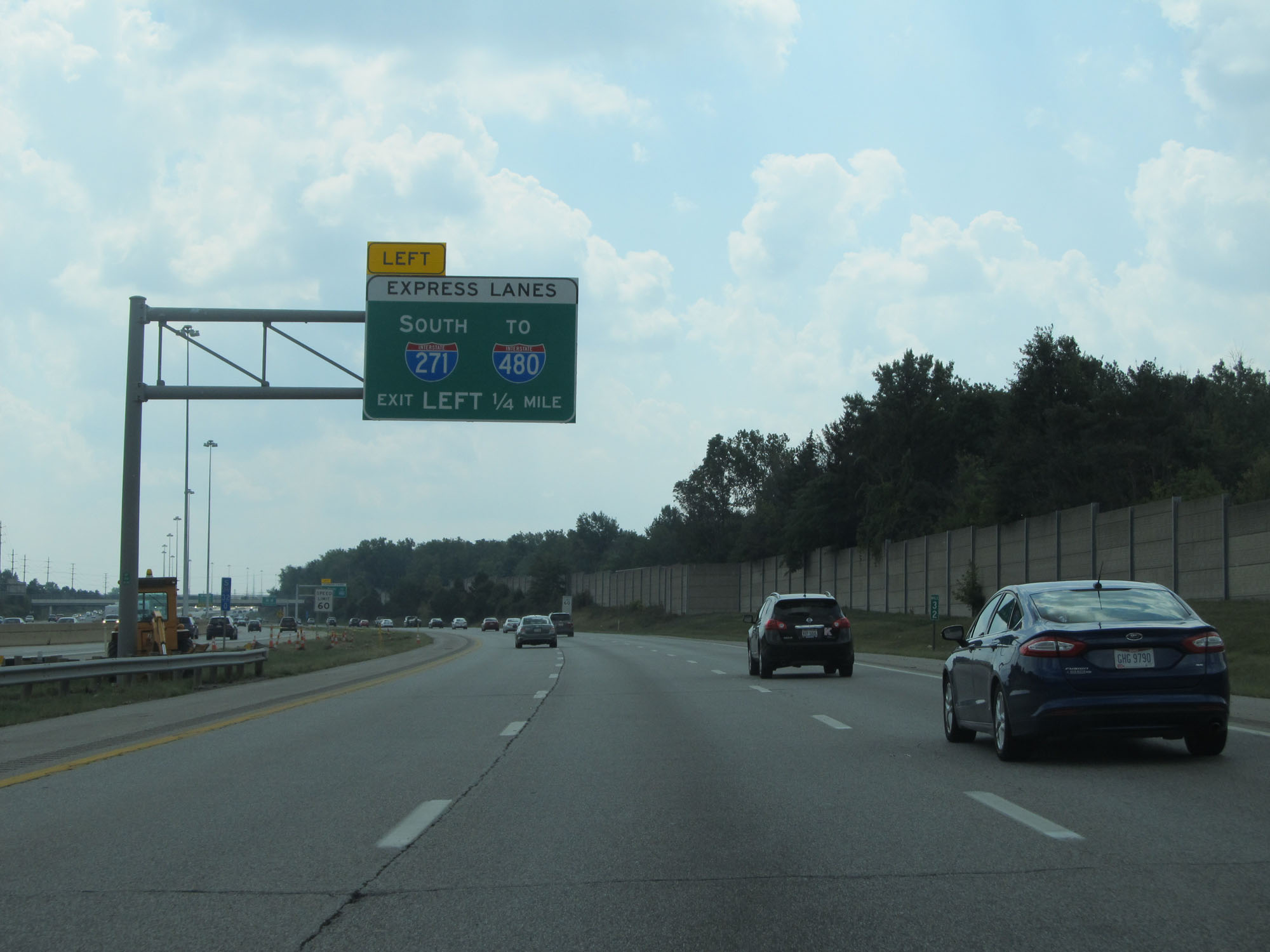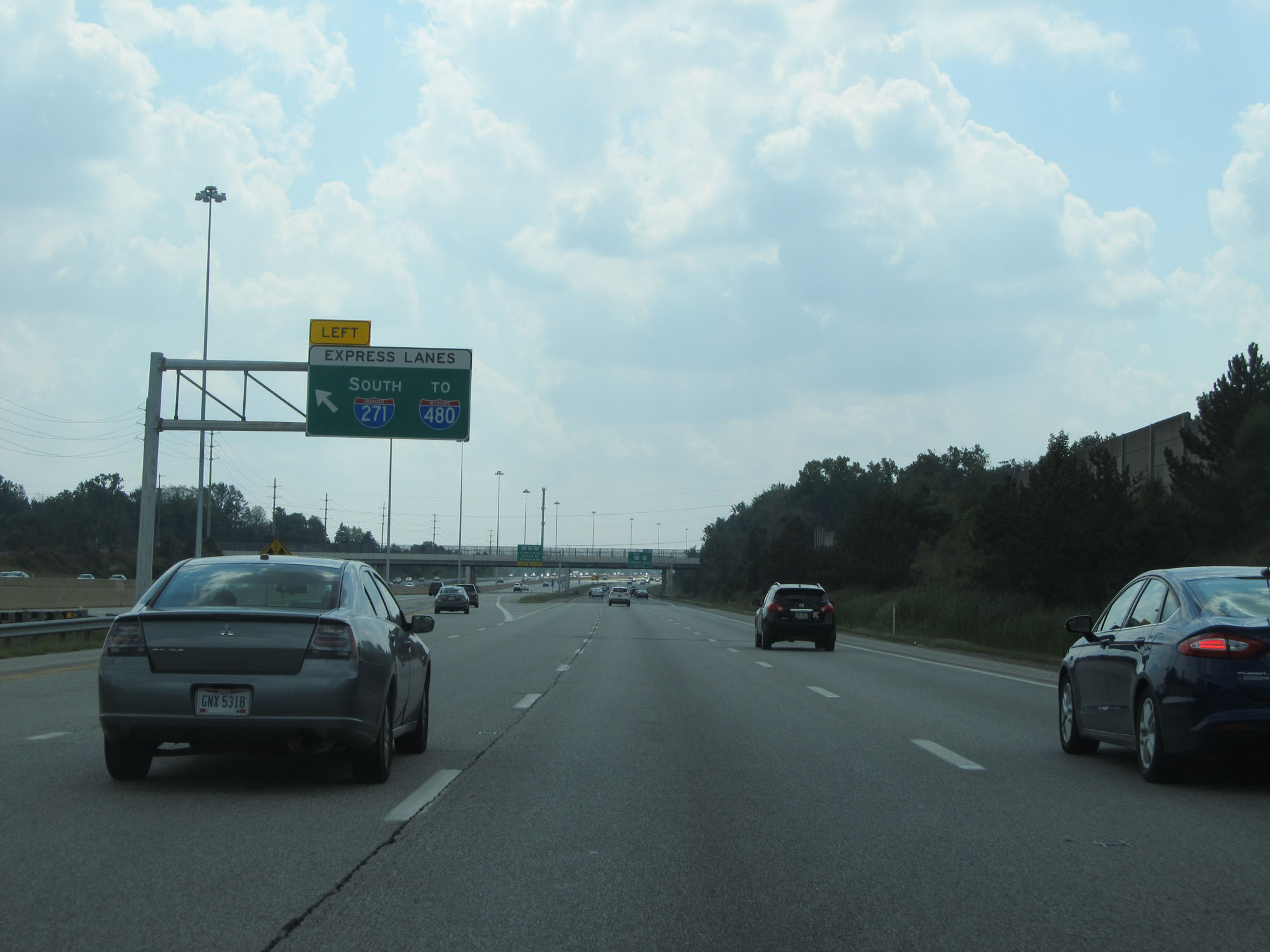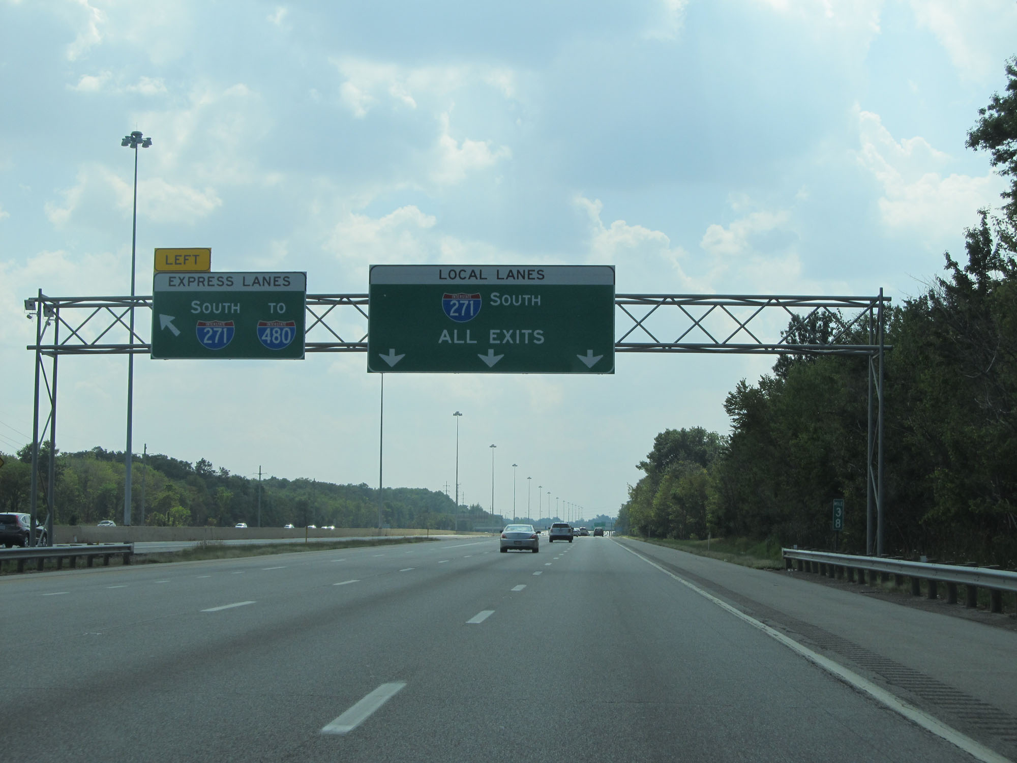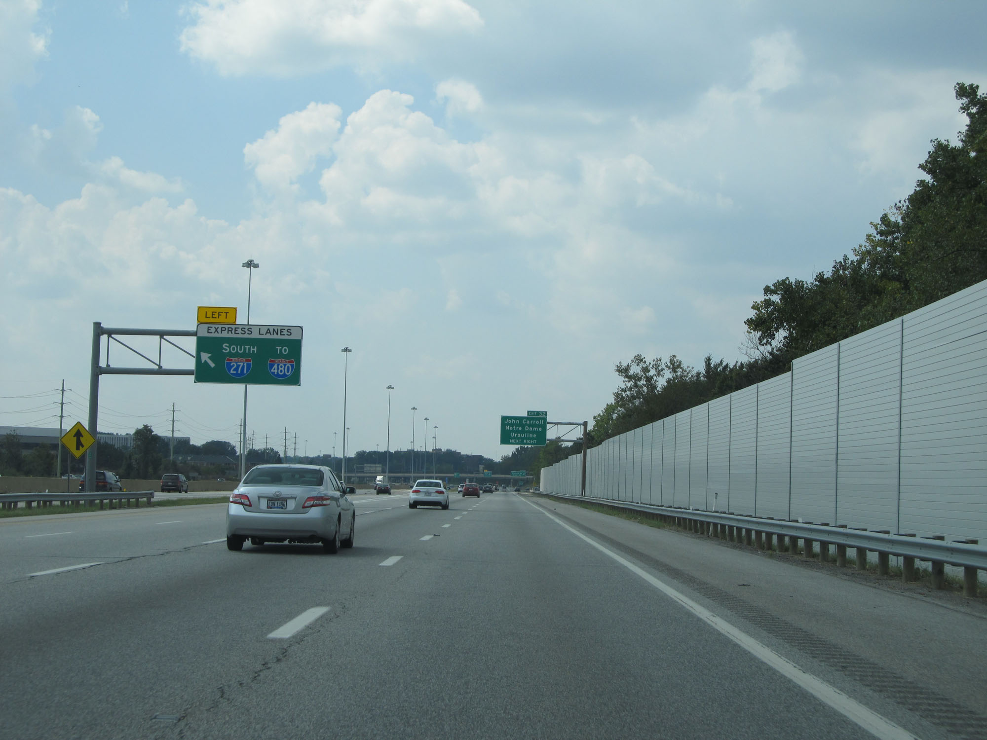 Interstate 271 South at mile marker 32, at which point another express lane entrance exists 1/4 mile ahead on the left. (Photo taken 9/7/15). |