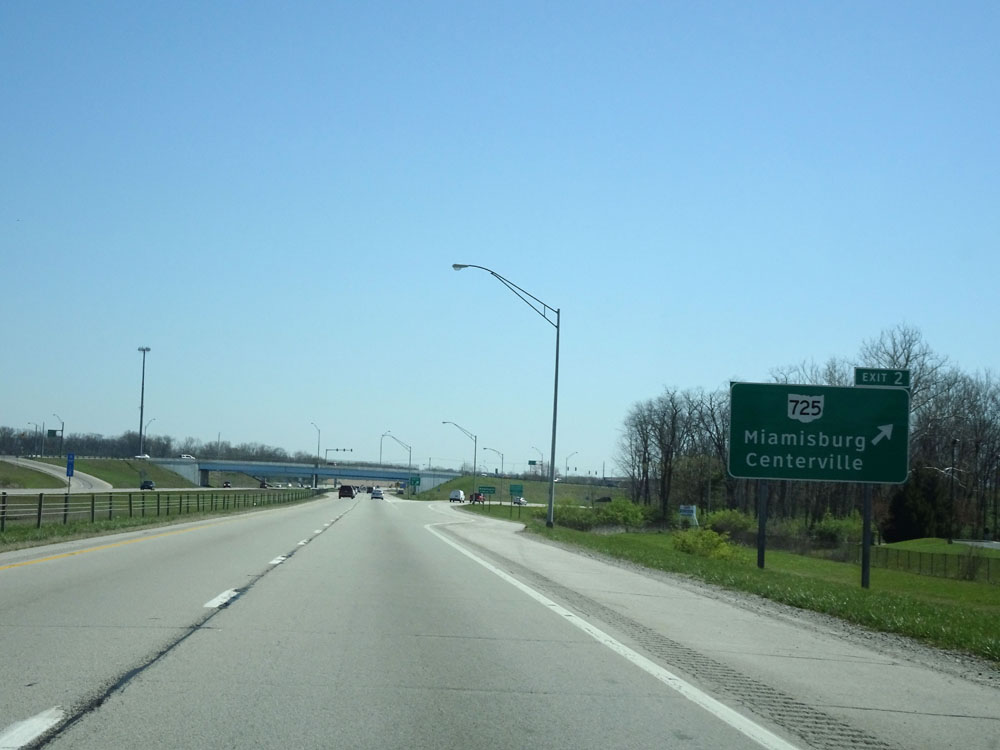 Interstate 675 North at Exit 2: OH 725 - Miamisburg / Centerville (Photo taken 4/17/16). |