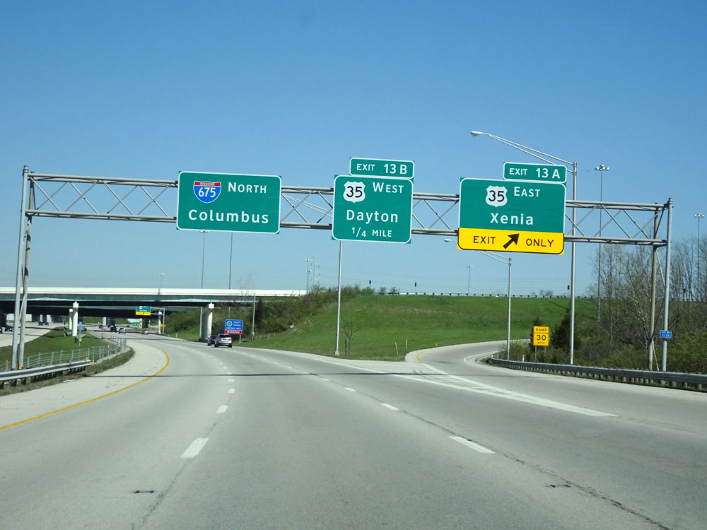 Interstate 675 North at Exit 13A: US 35 East - Xenia (Photo taken 4/17/16). |