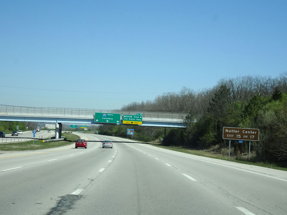 Interstate 675 North at Exit 15: W.P.A.F.B. Area B / Col Glenn Hwy (Photo taken 4/17/16). |