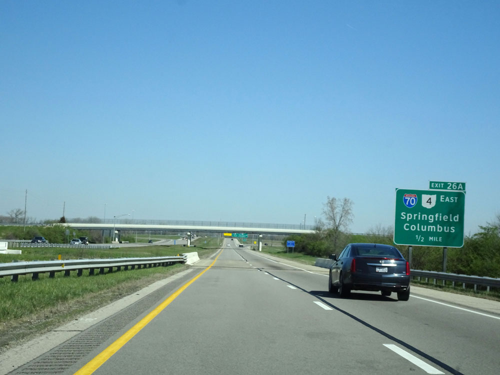 Interstate 675 North at Exit 26A: Interstate 70 East / OH 4 East - Springfield / Columbus (Photo taken 4/17/16). |
