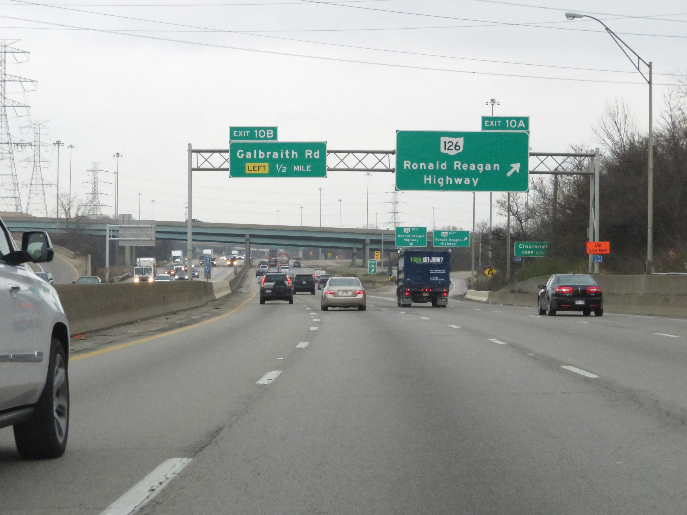 More advance signage for the junction of Interstate 70 via Exit 61, now 1/2 mile ahead. Interstate 75 North thru traffic should use the three left lanes. (Photo taken 12/17/20). |