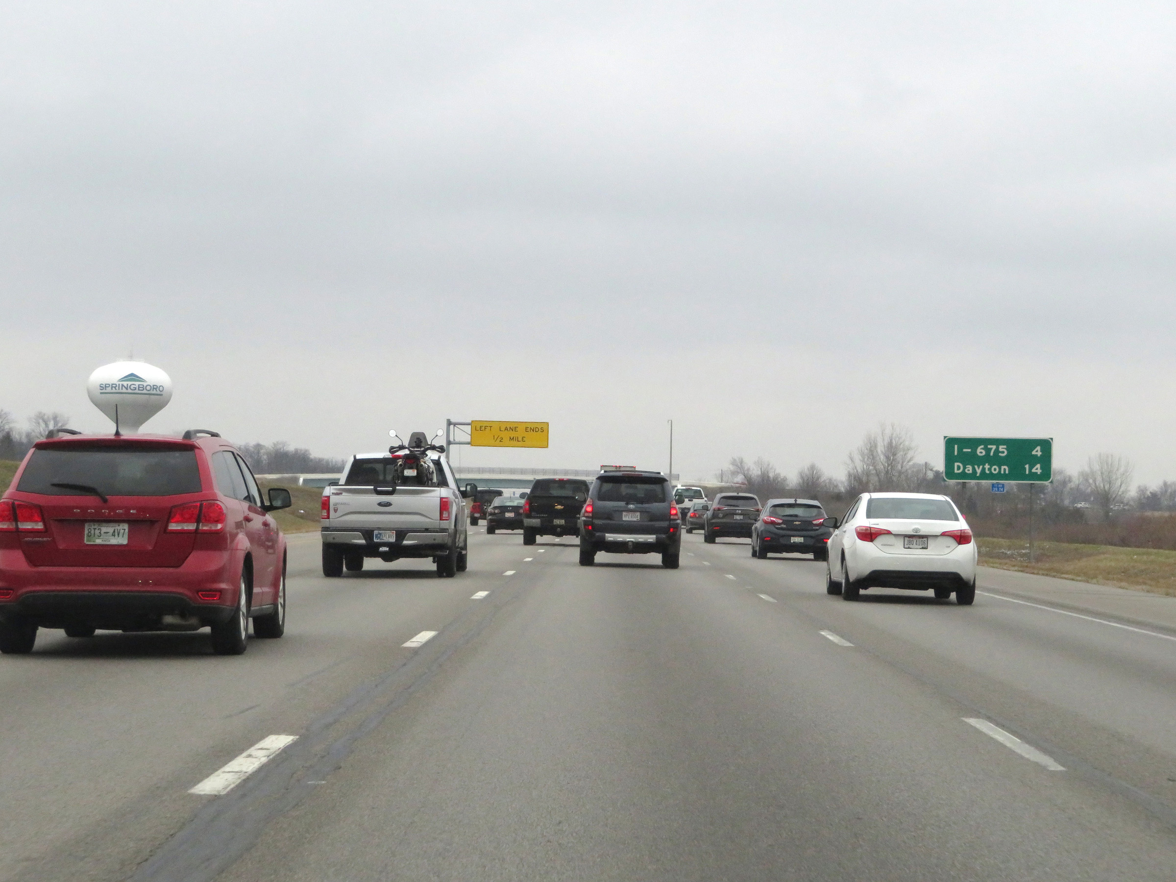 View on Interstate 75 North at mile marker 62, as traffic from Interstate 70 merges into it from the right. (Photo taken 12/17/20). |