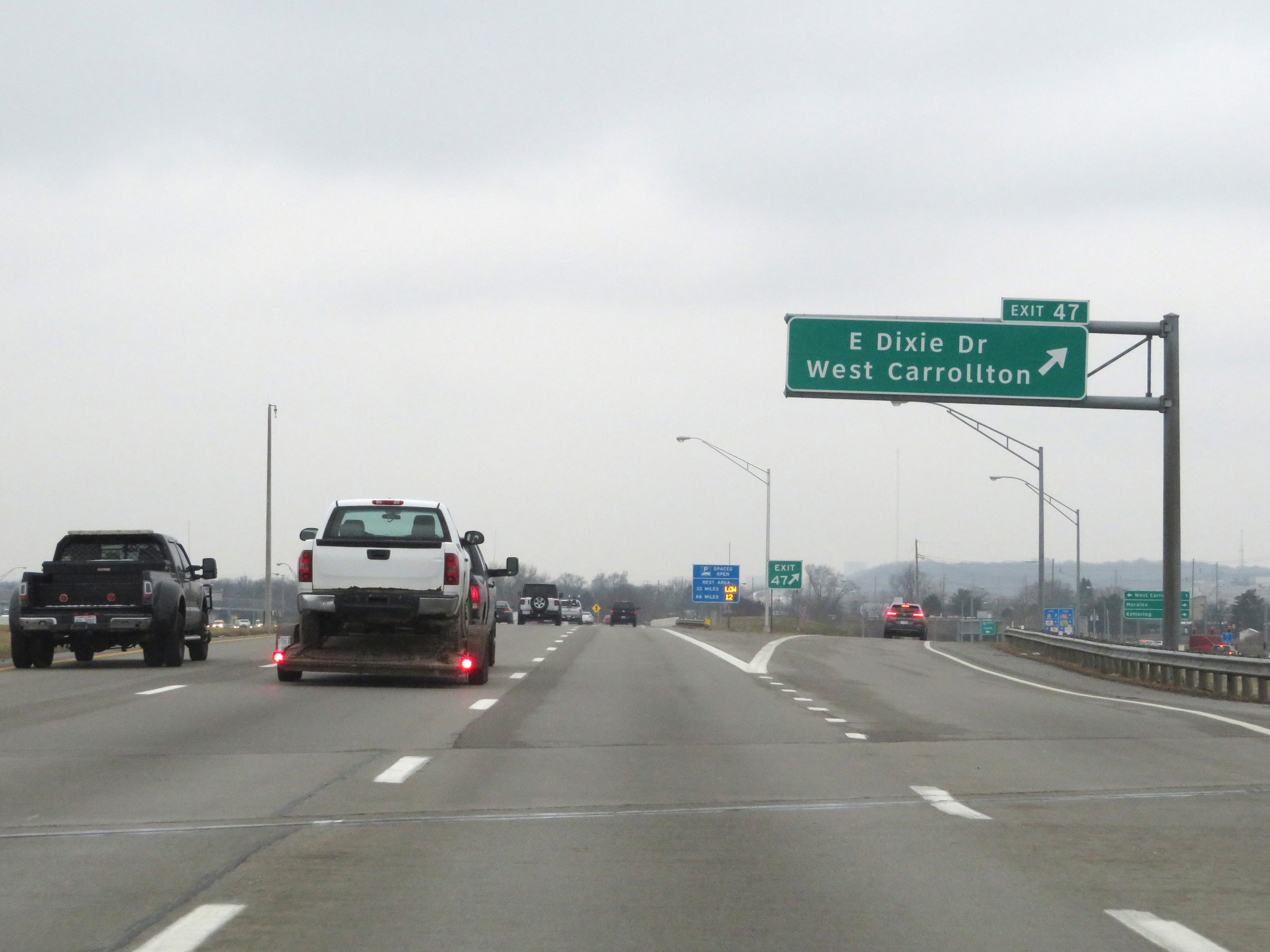 Interstate 75 North at Exit 47: East Dixie Dr / West Carrollton (Photo taken 12/17/20). |