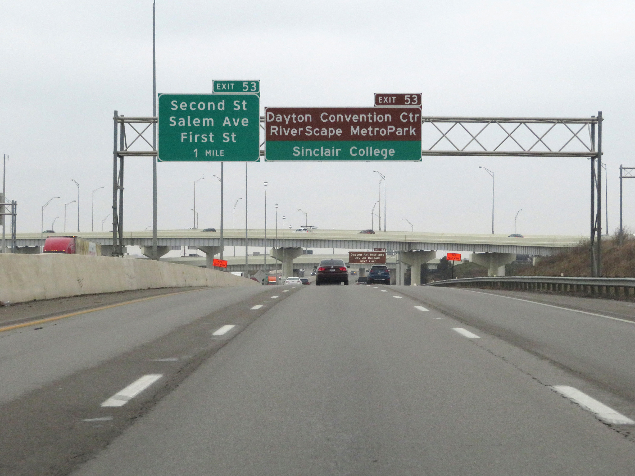 Take Exit 53 to Dayton Convention Center, RiverScape Metro Park, and Sinclair College. (Photo taken 12/17/20). |