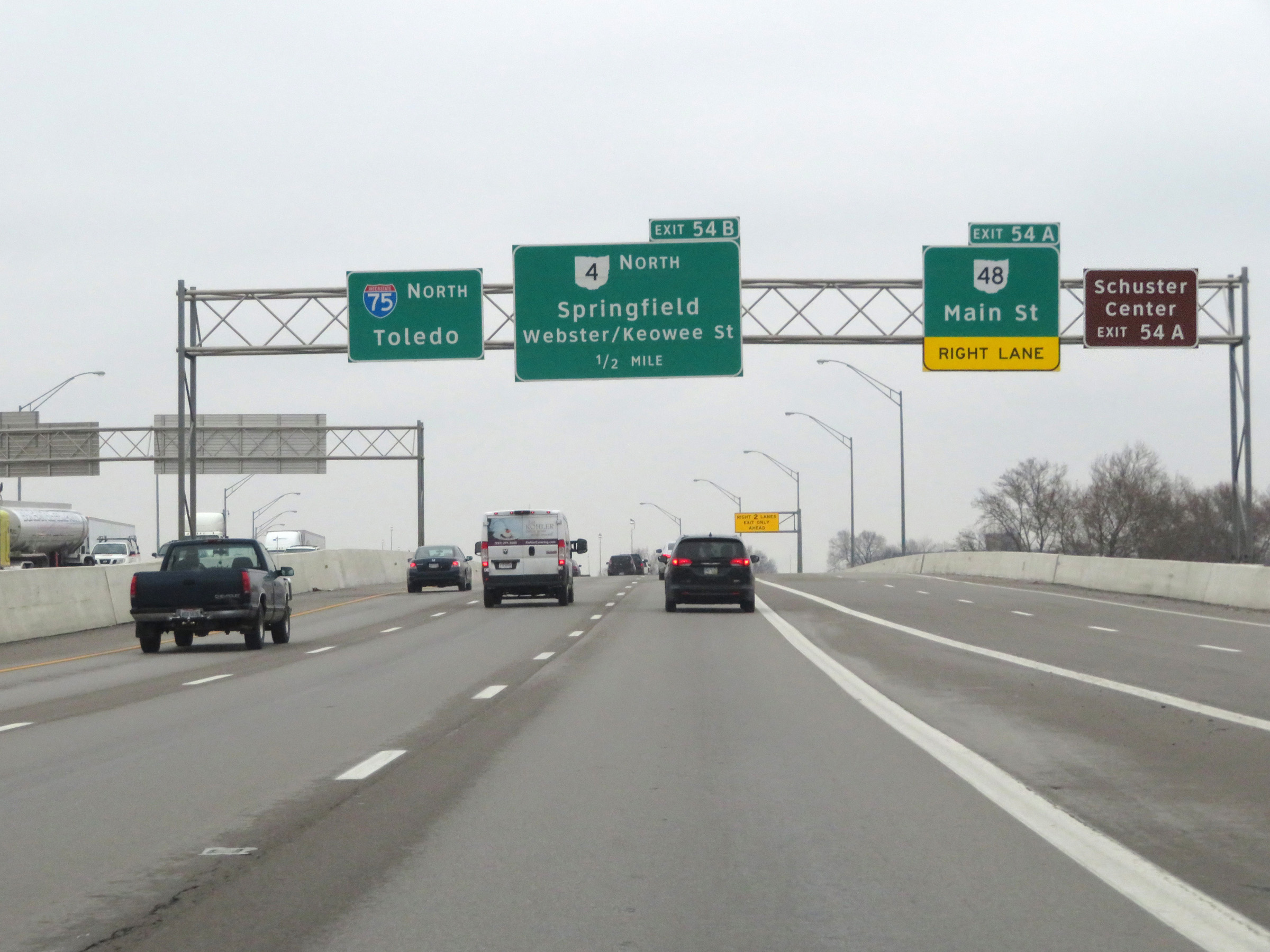 Interstate 75 North at Exit 54B: OH 4 North - Springfield / Webster St / Keowee St (Photo taken 12/17/20). |