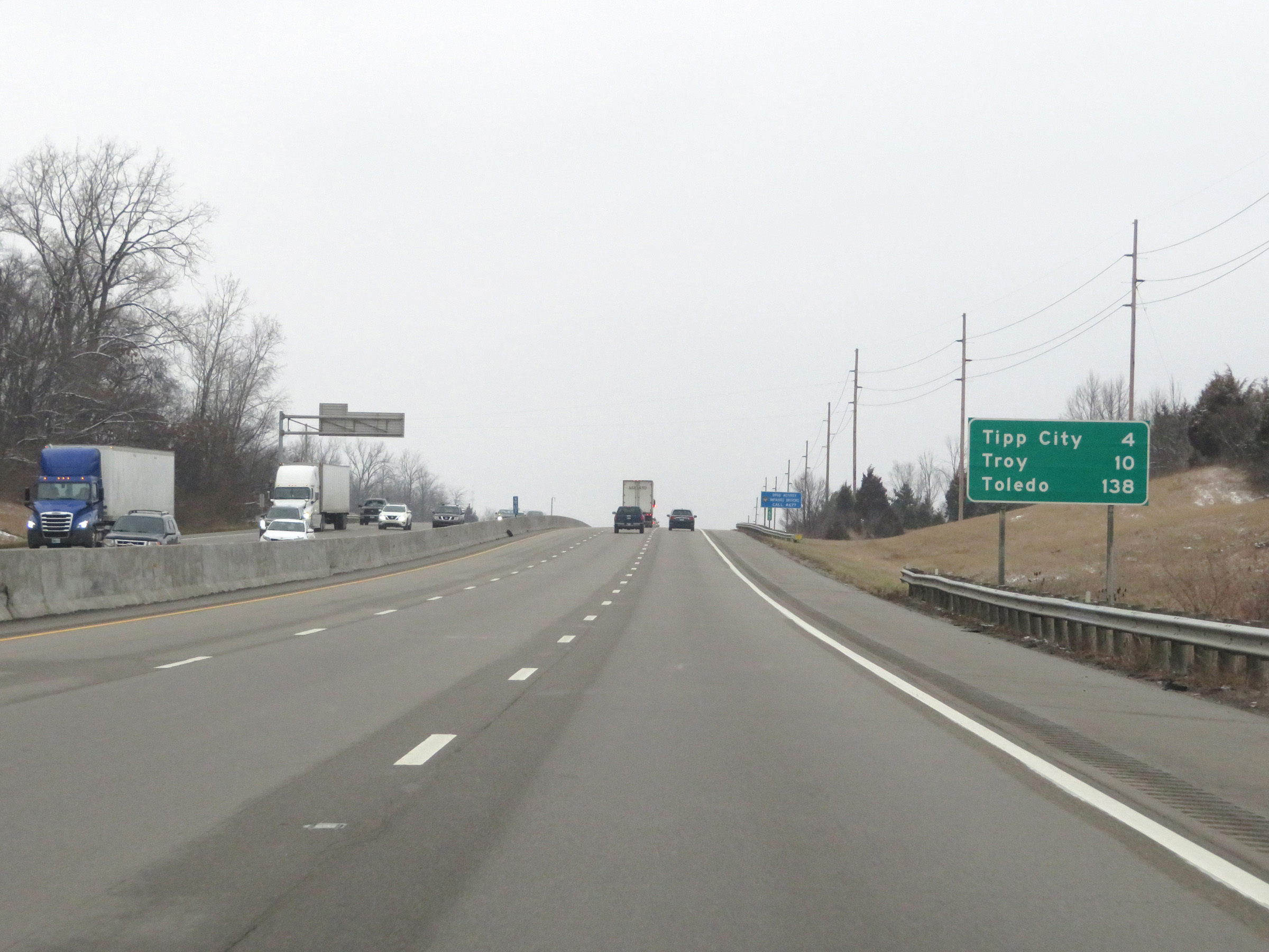 Interstate 75 North at Exit 73: OH 55 - Troy / Ludlow Falls (Photo taken 12/17/20). |