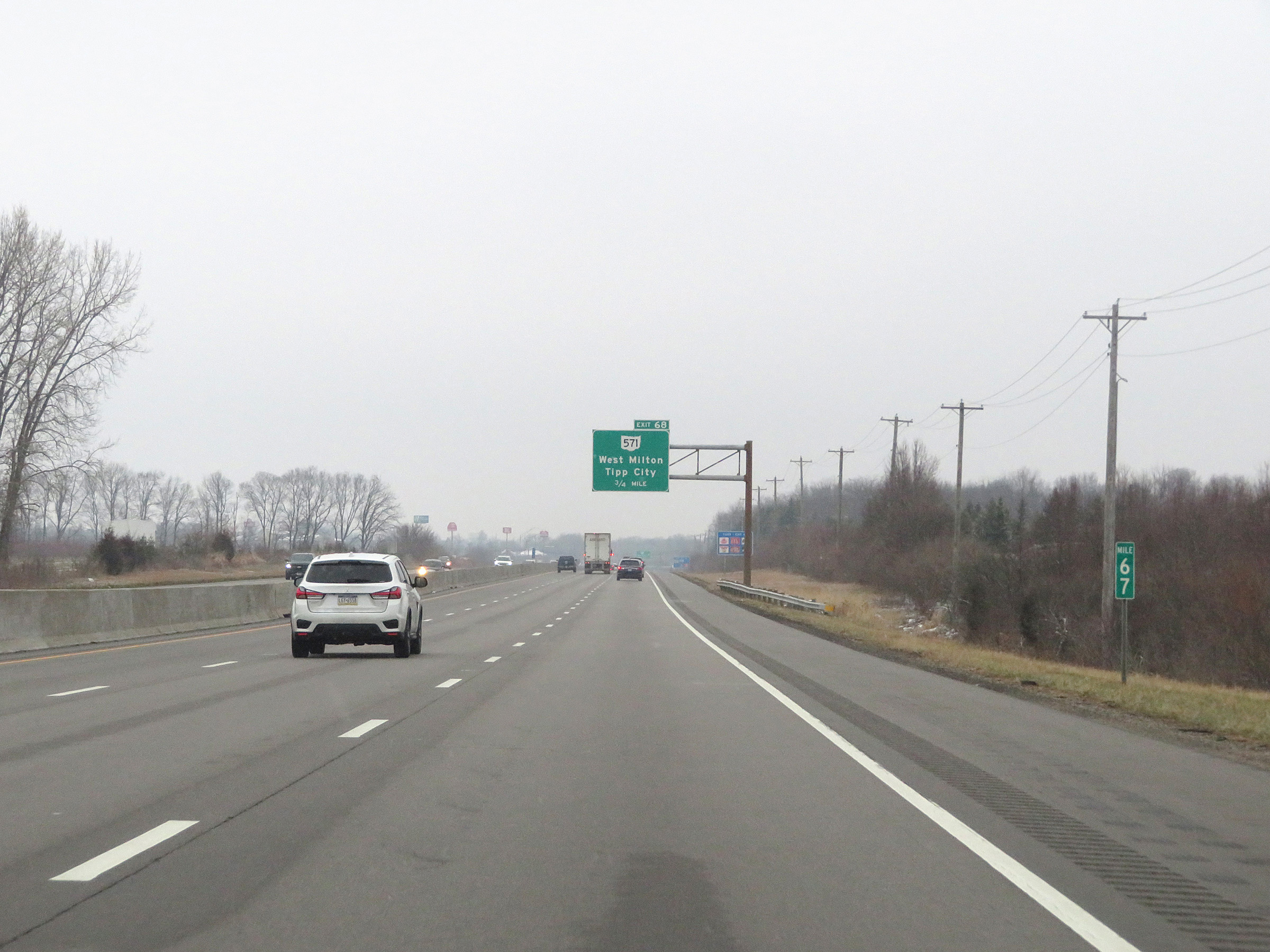 Interstate 75 North at Exit 68: OH 571 - West Milton / Tipp City (Photo taken 12/17/20). |