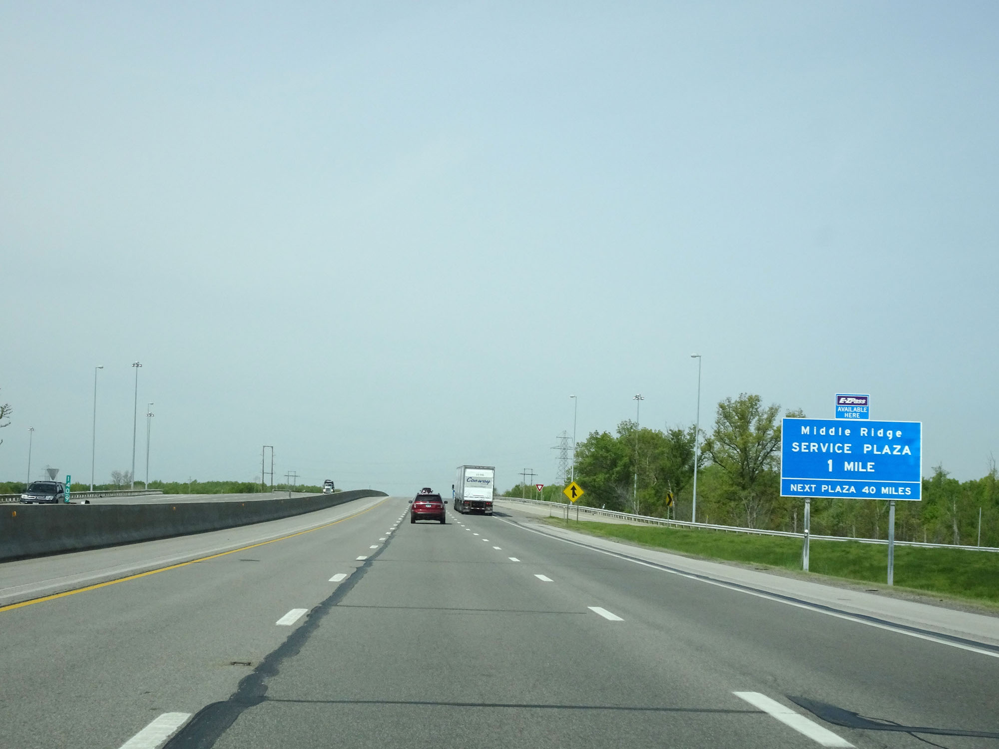 Interstate 80 / Interstate 90 West (Ohio Turnpike) at the Blue Heron Service Plaza, located at mile marker 77.  (Photo taken 5/20/16).