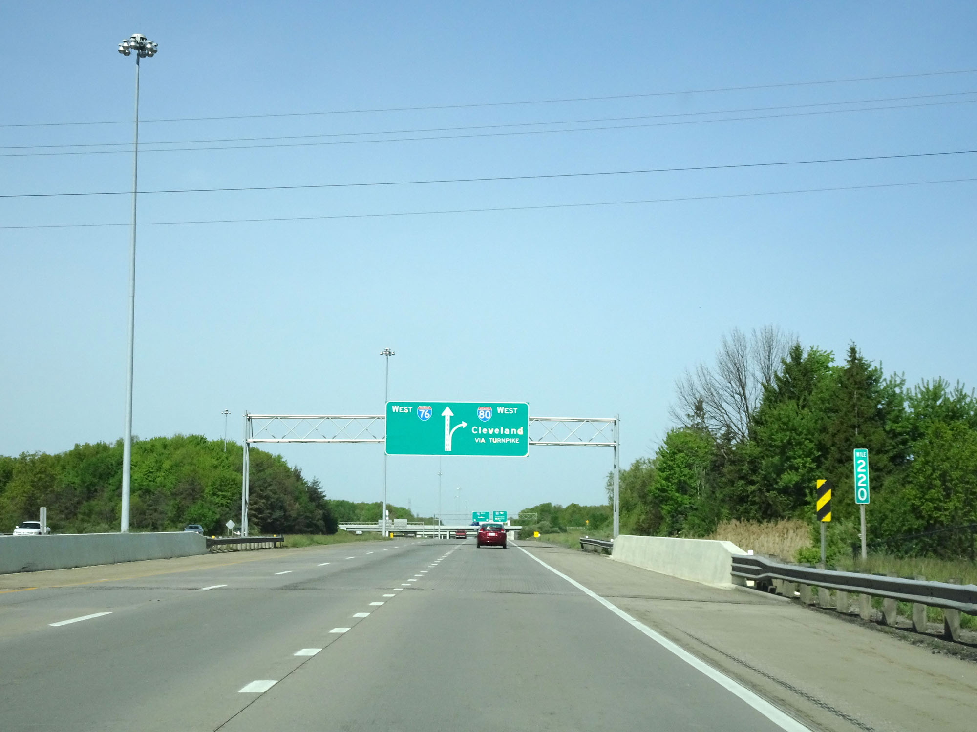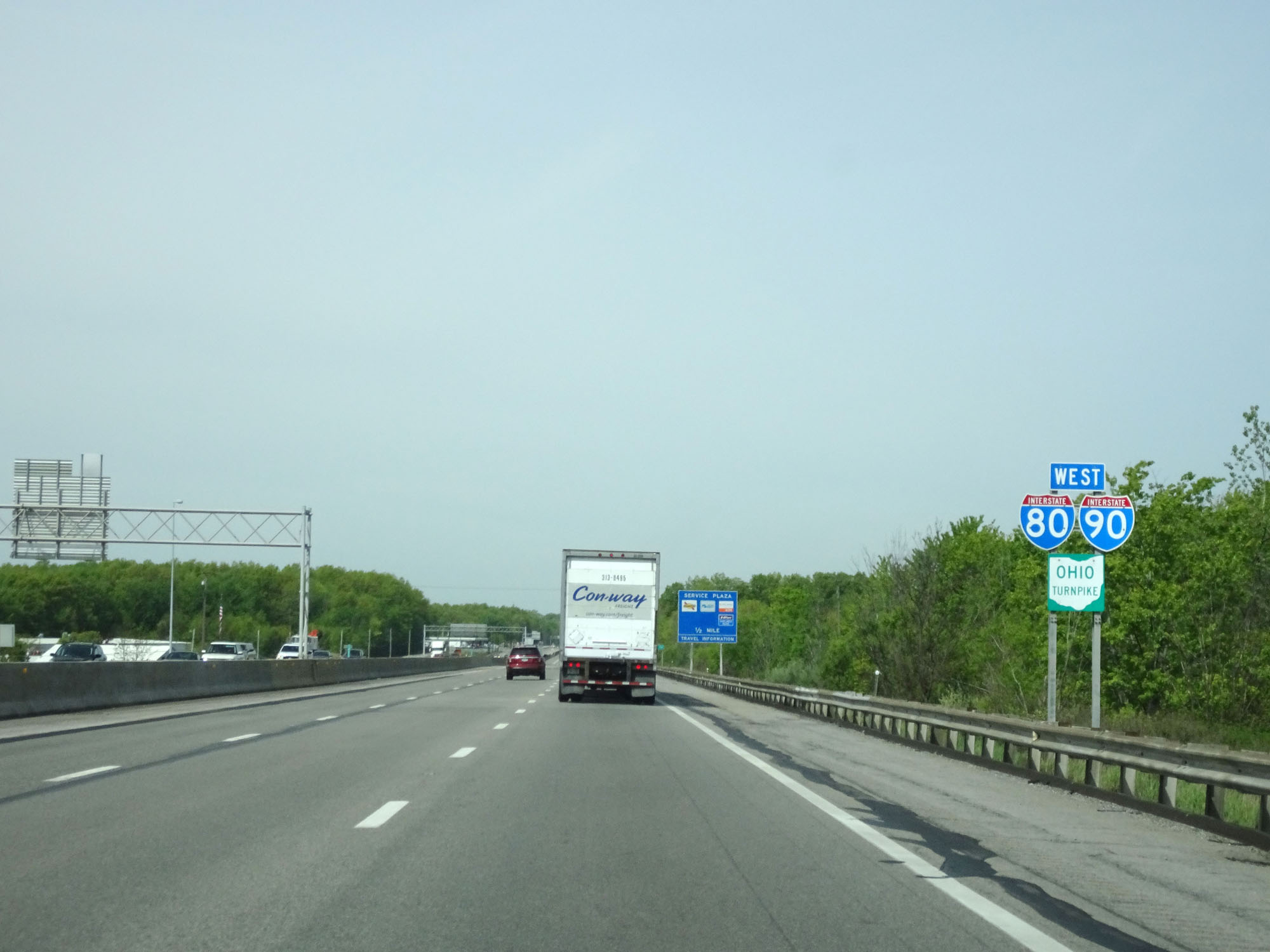 Interstate 80 / Interstate 90 West (Ohio Turnpike) at mile marker 19.  (Photo taken 5/20/16).