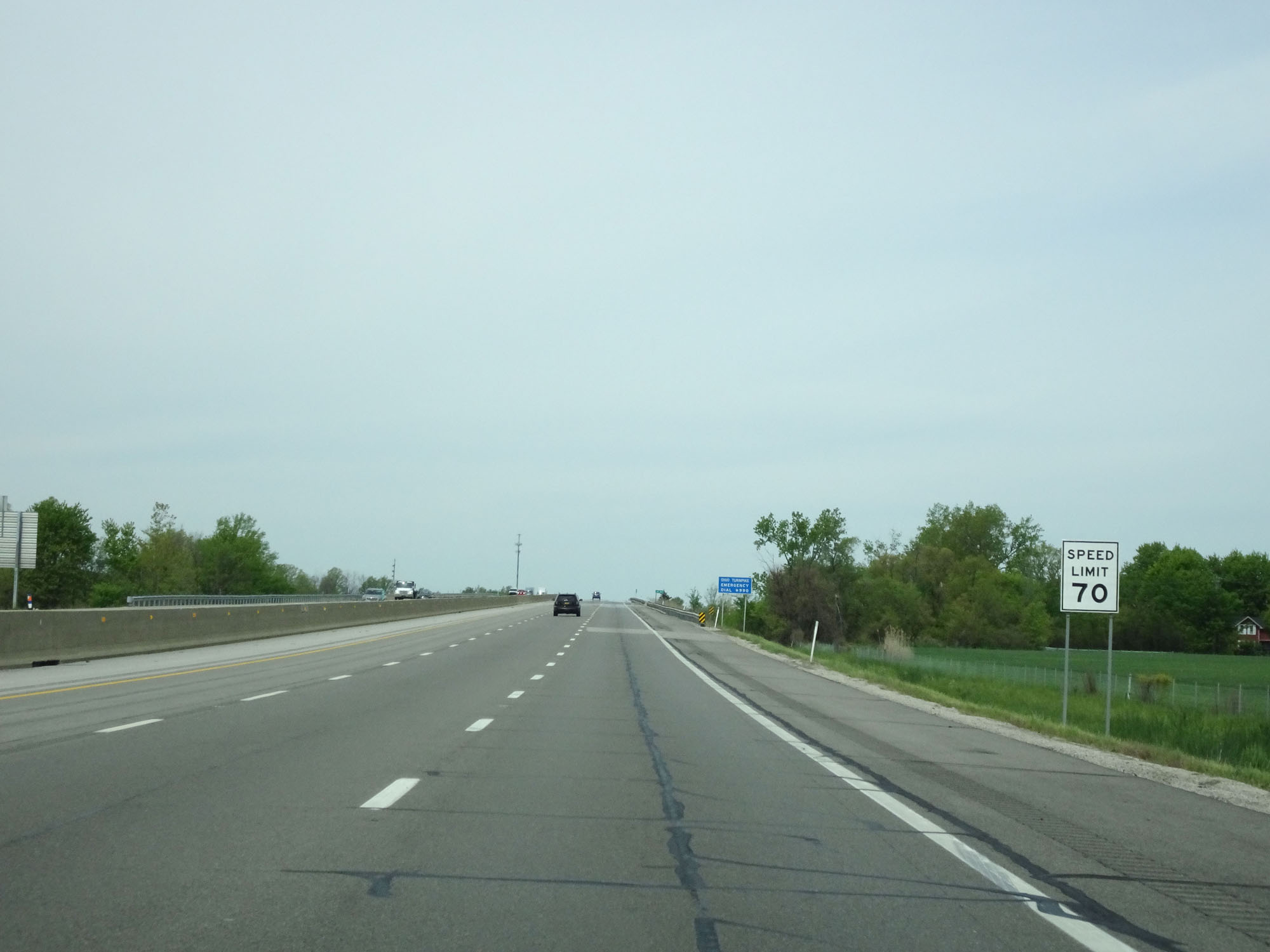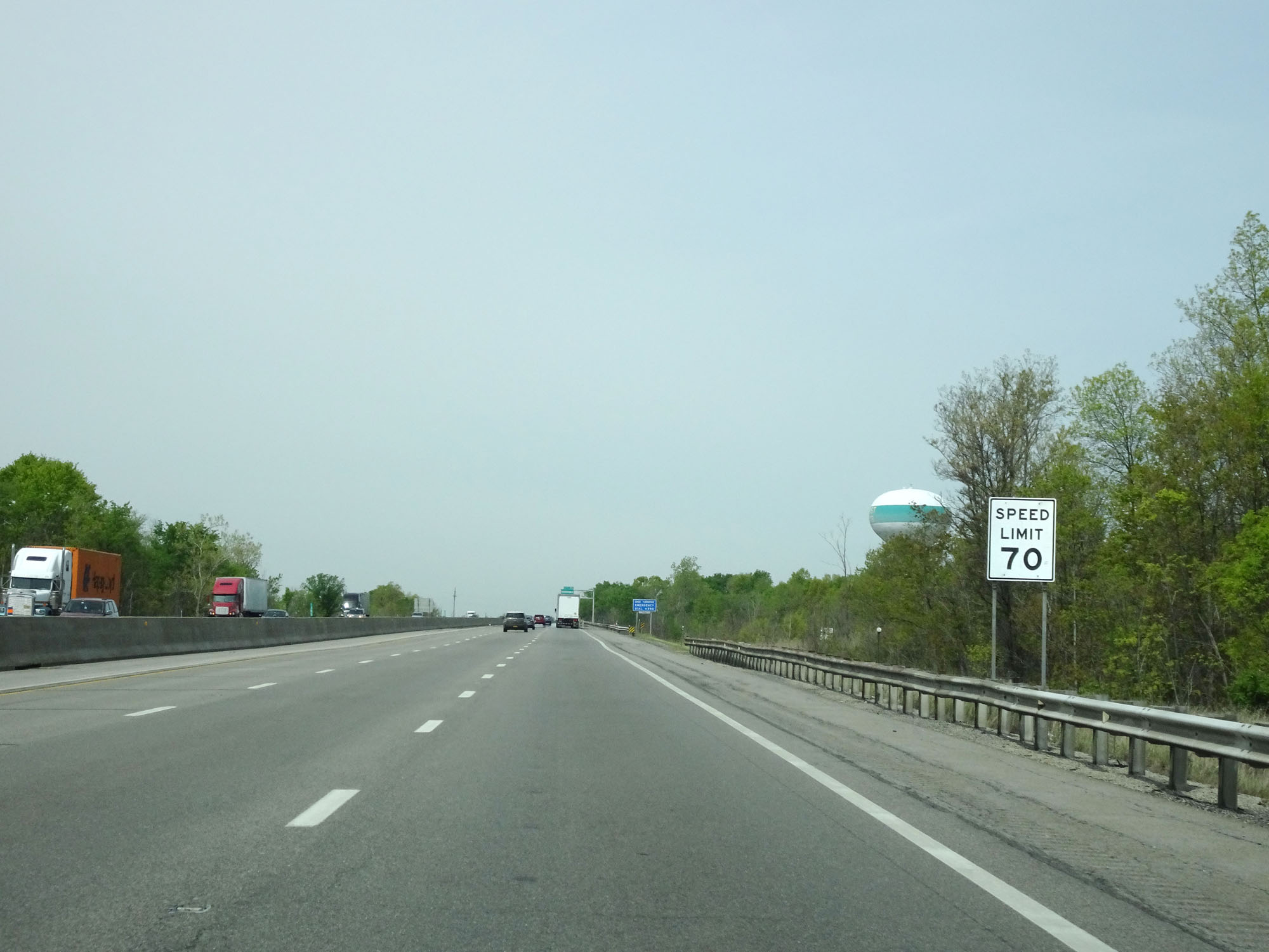 Speed limit sign on Interstate 80 West (Ohio Turnpike). The speed limit on most rural Interstates in Ohio is 70 mph.  (Photo taken 5/20/16).