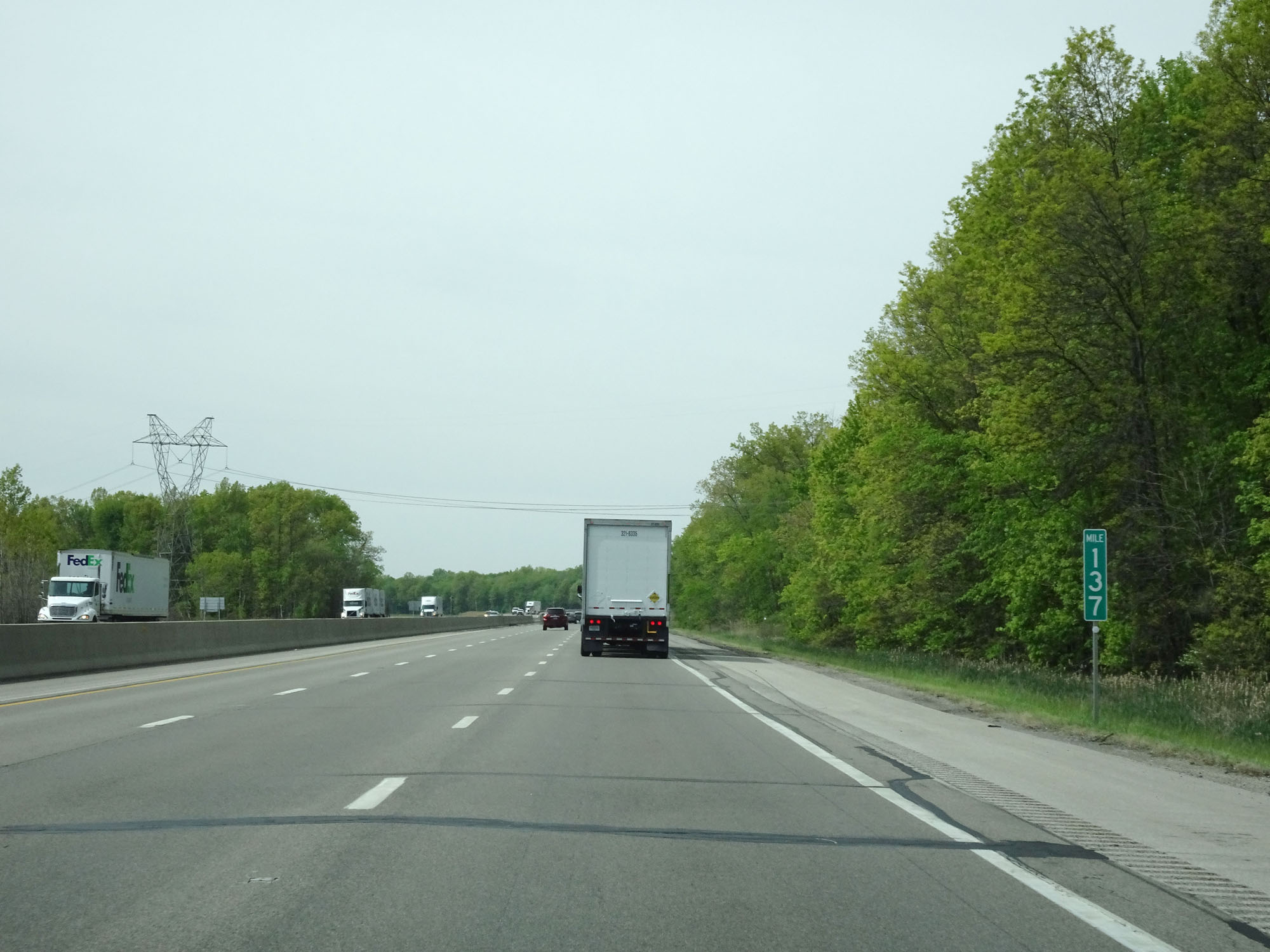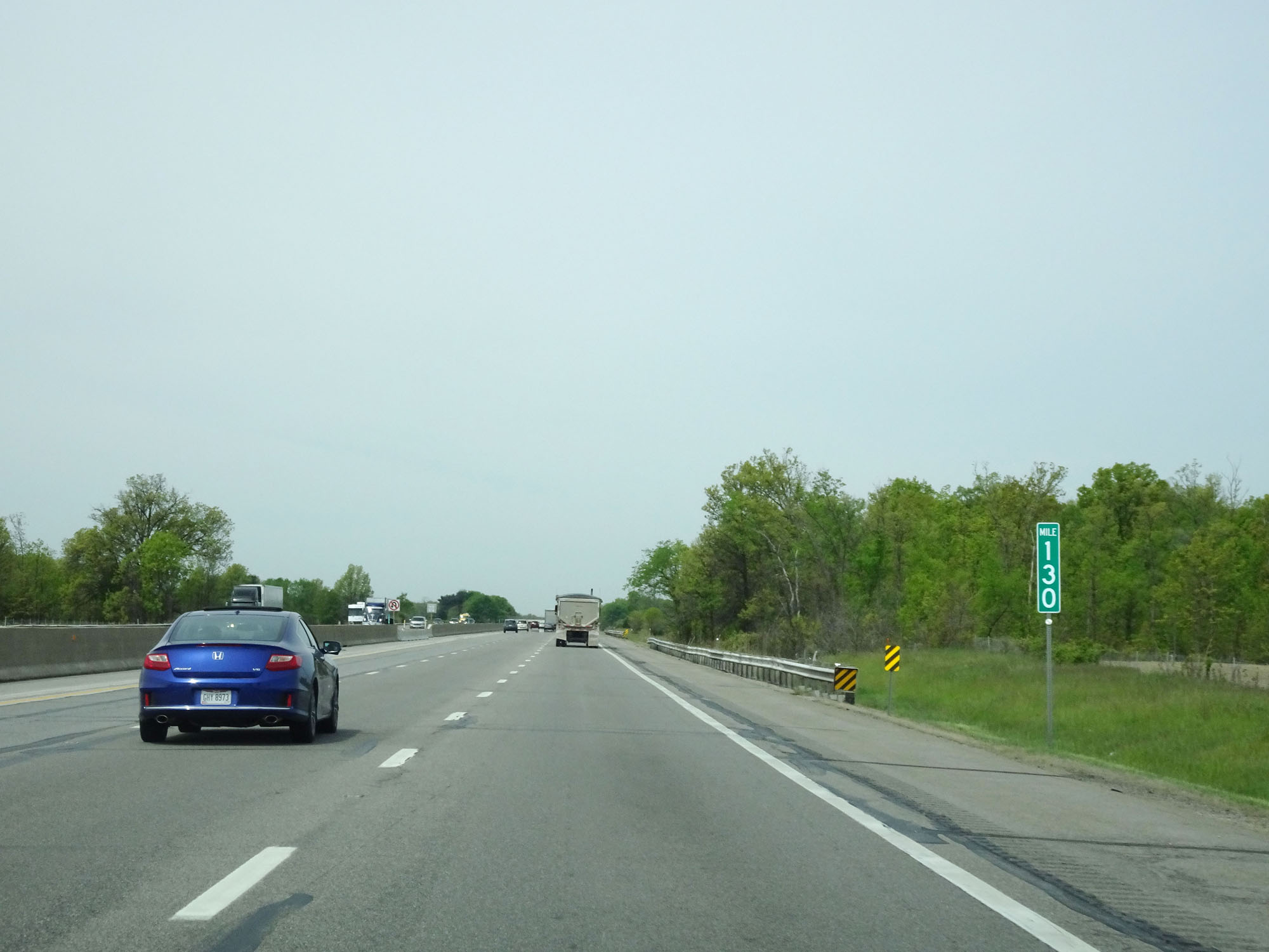Interstate 80 / Interstate 90 West (Ohio Turnpike) at mile marker 130.  (Photo taken 5/20/16).