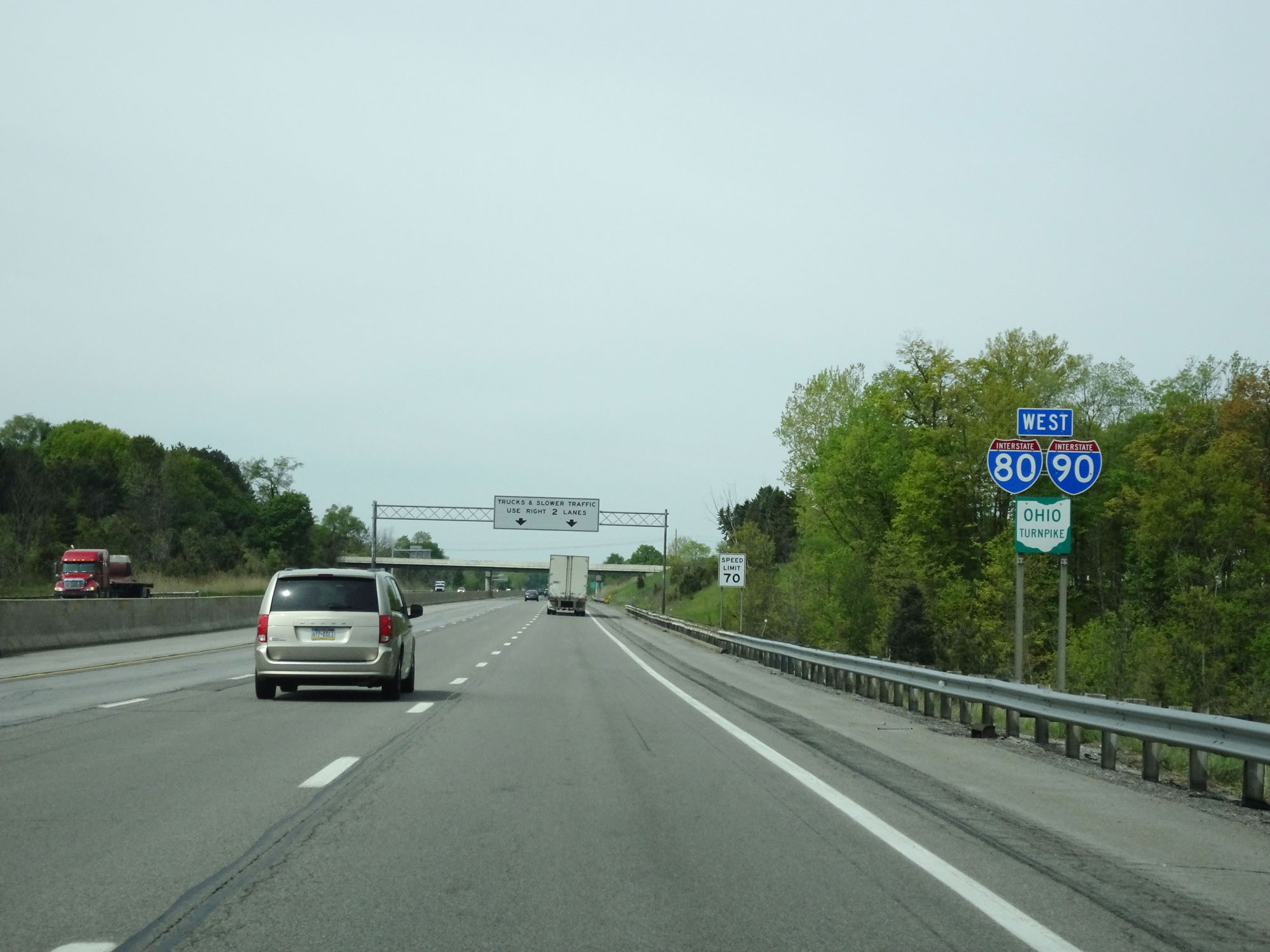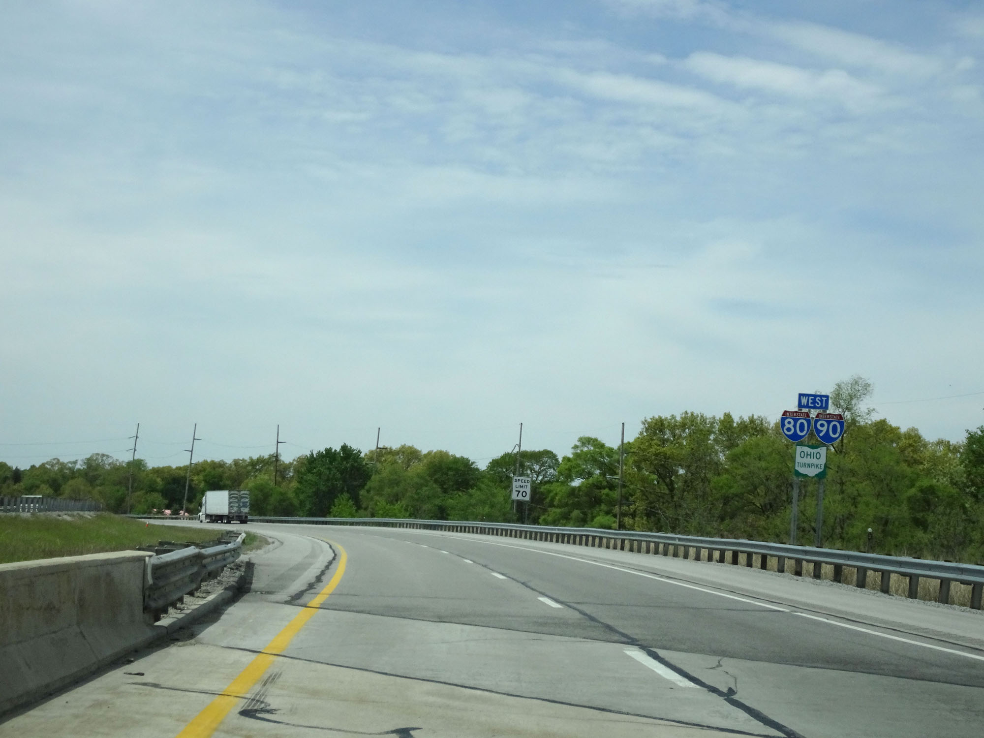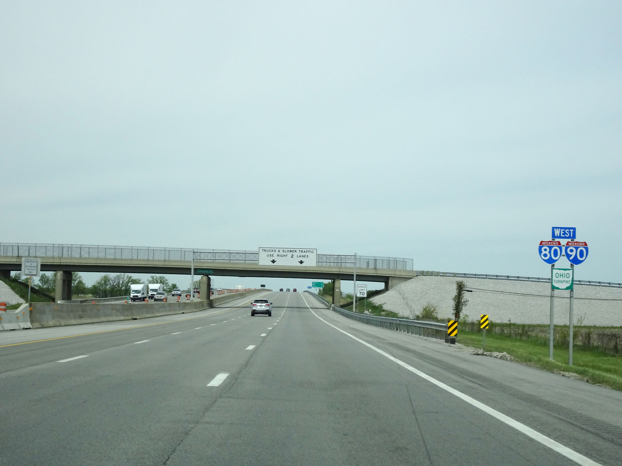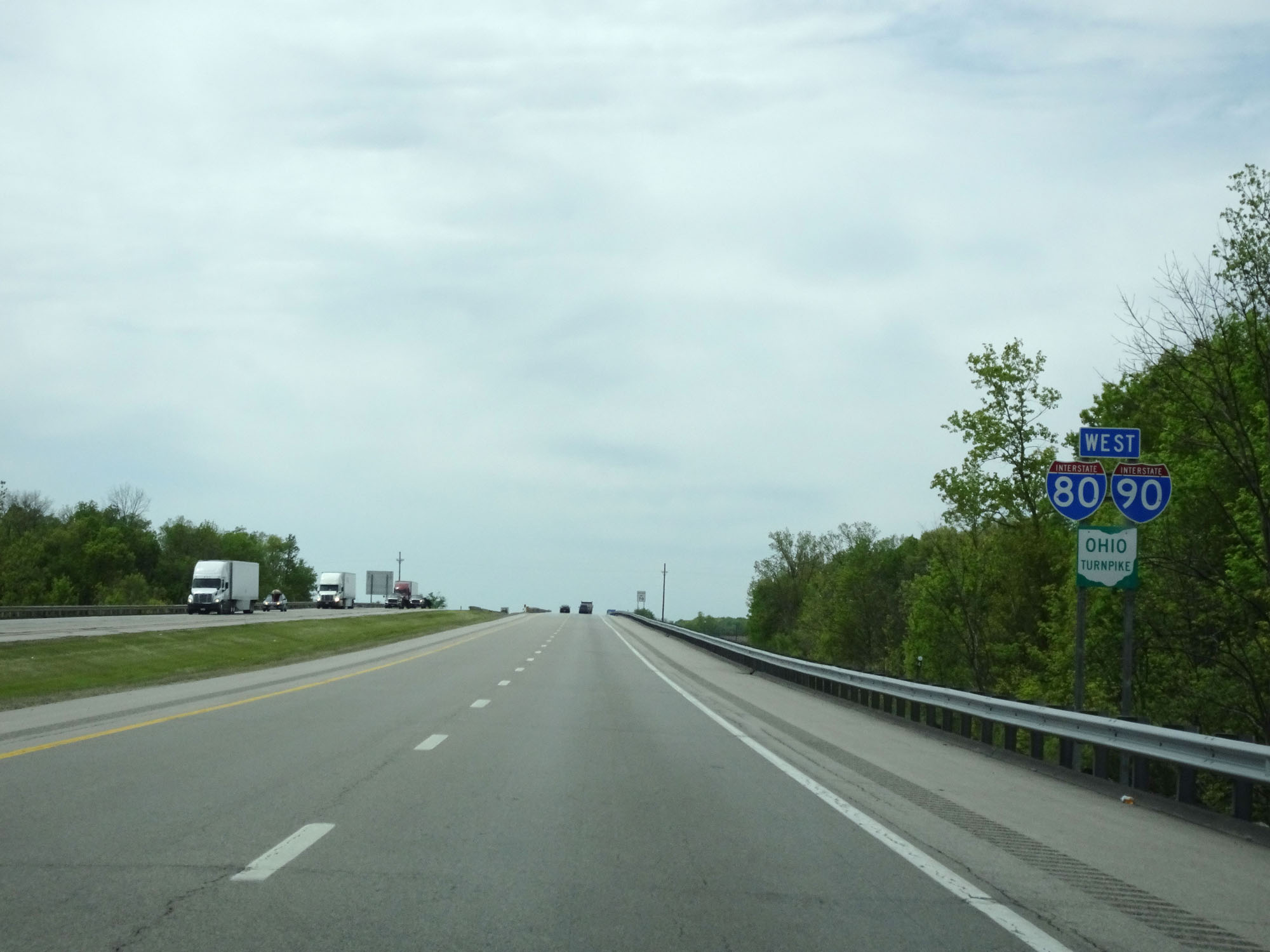 Interstate 80 / Interstate 90 West (Ohio Turnpike) at mile marker 90.  (Photo taken 5/20/16).