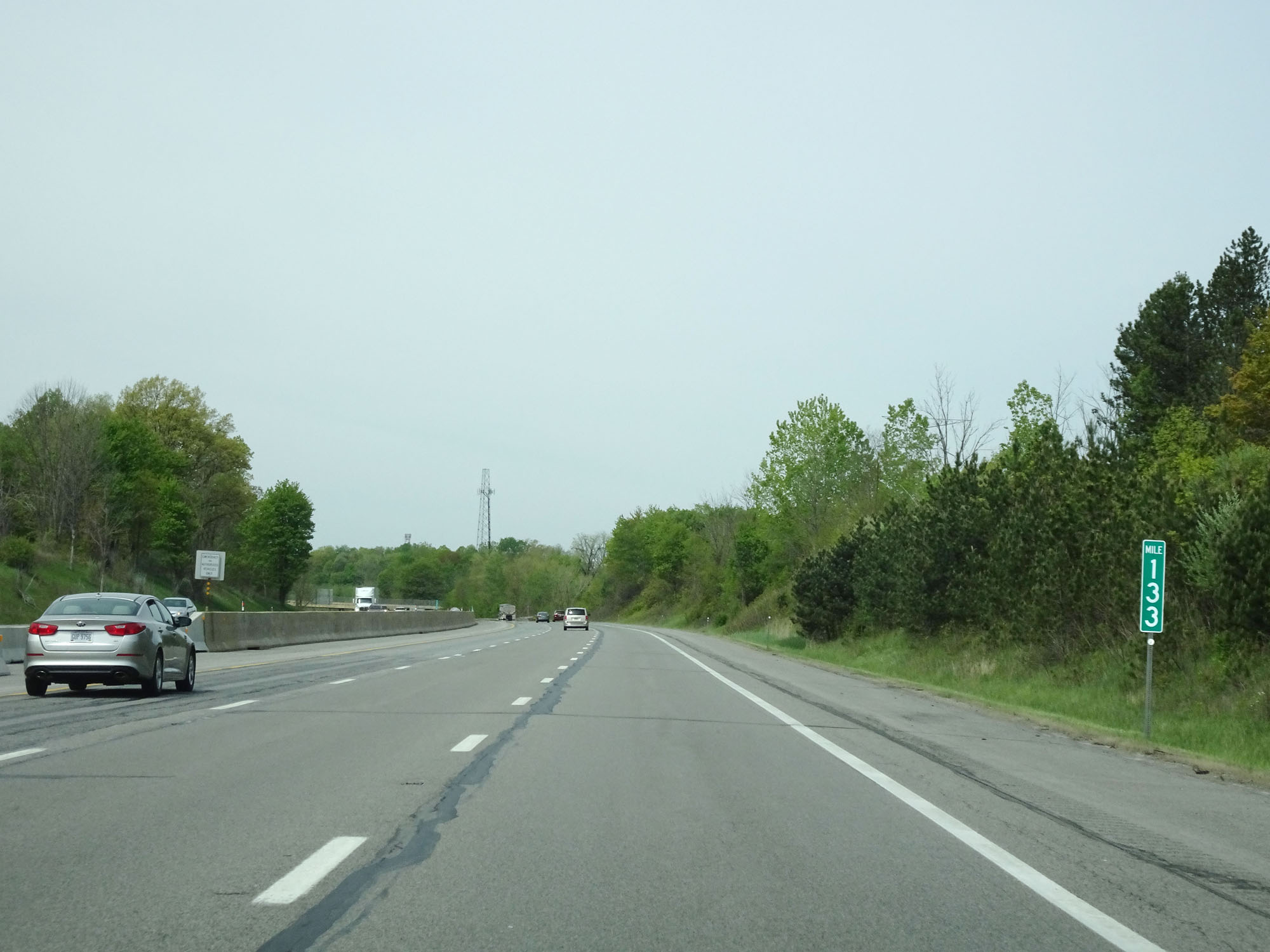 Interstate 80 / Interstate 90 West (Ohio Turnpike) approaching Exit 13 - 1 mile.  (Photo taken 5/20/16).