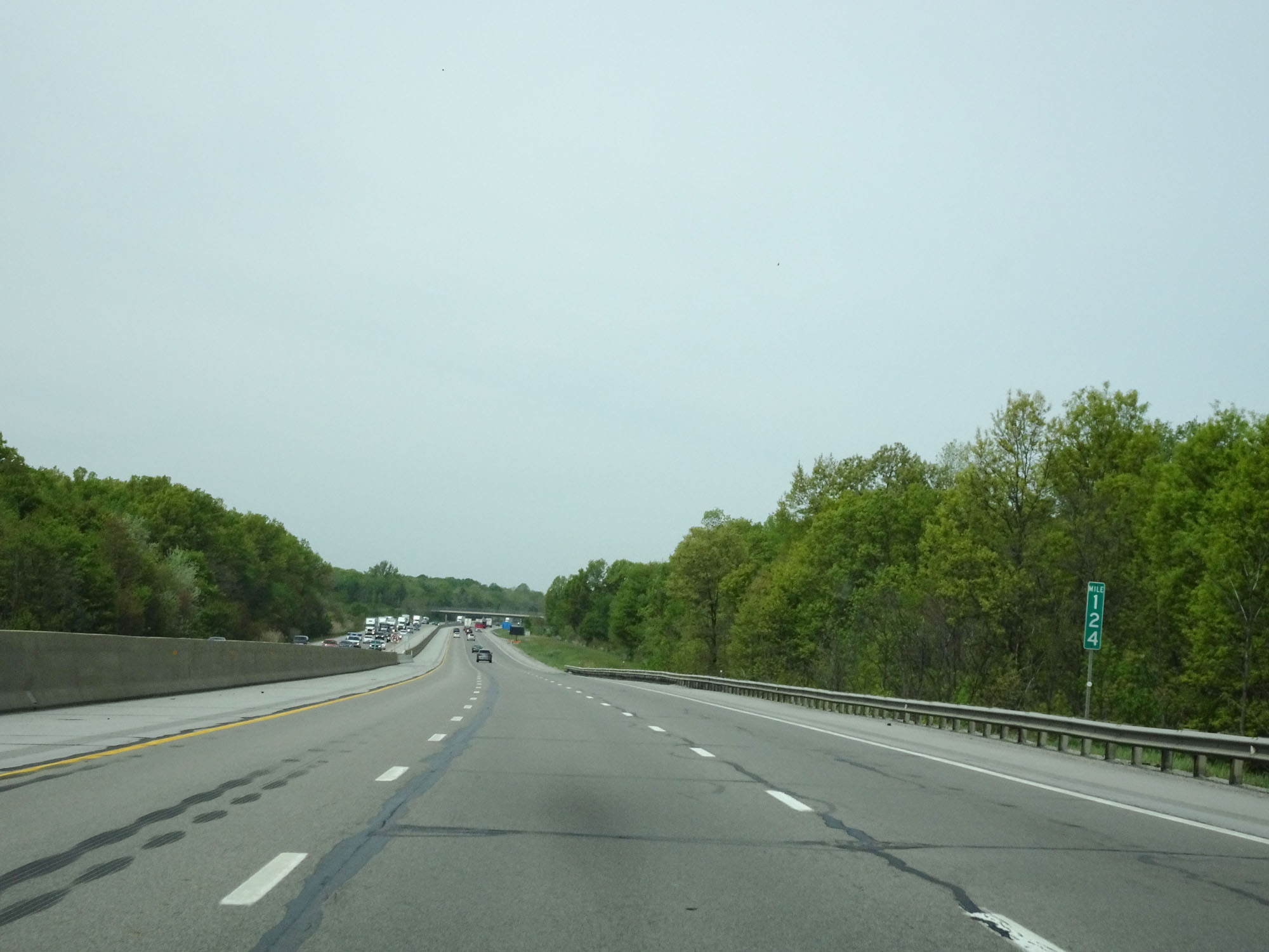 Interstate 80 / Interstate 90 West (Ohio Turnpike) at mile marker 124.  (Photo taken 5/20/16).