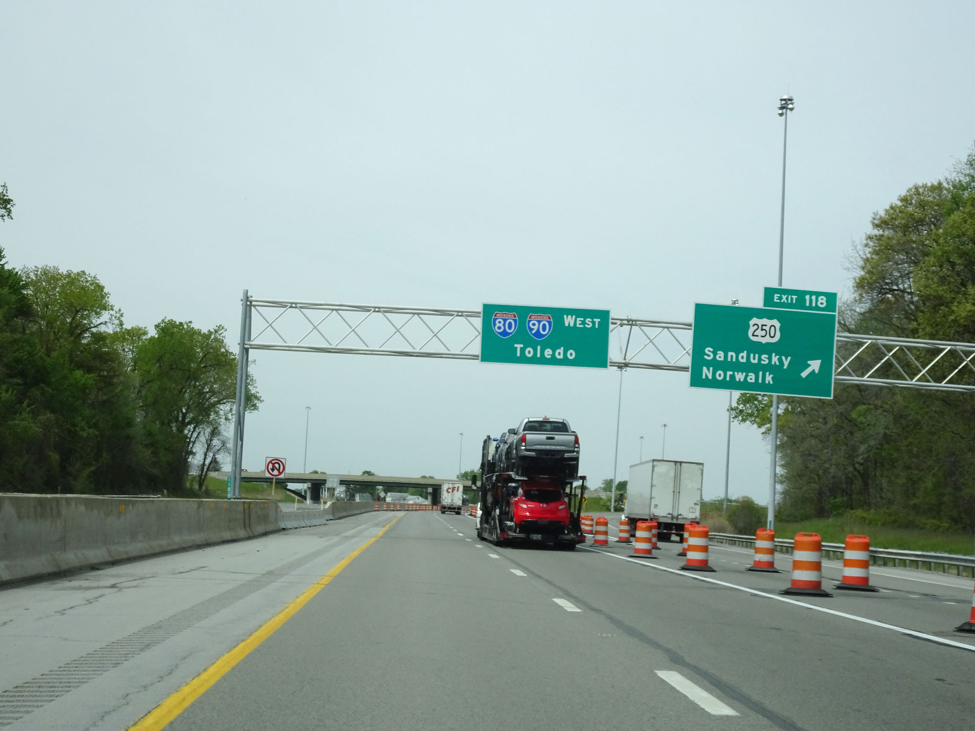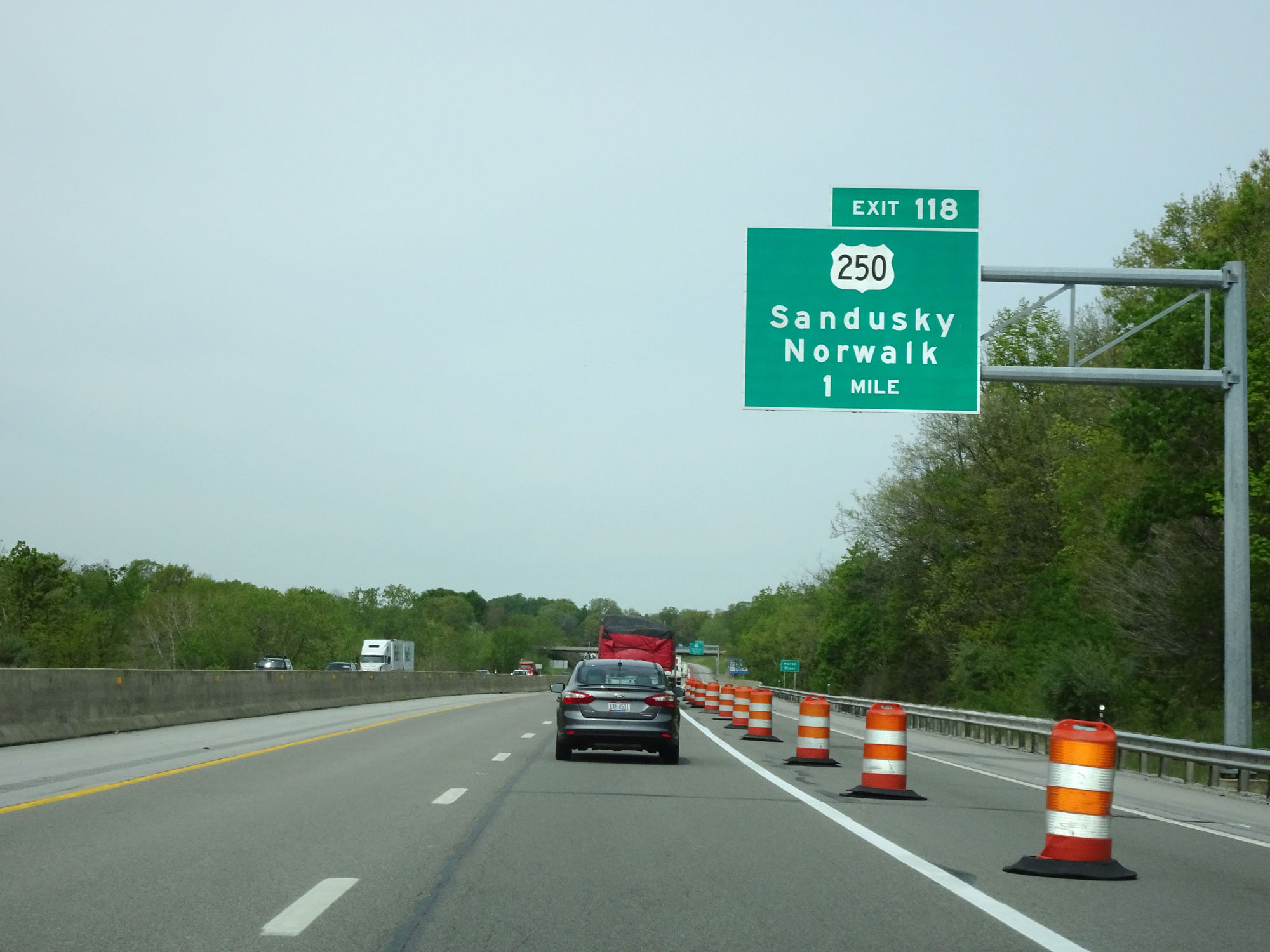 Interstate 80 / Interstate 90 West (Ohio Turnpike) at Exit 118: US 250 - Sandusky / Norwalk  (Photo taken 5/20/16).