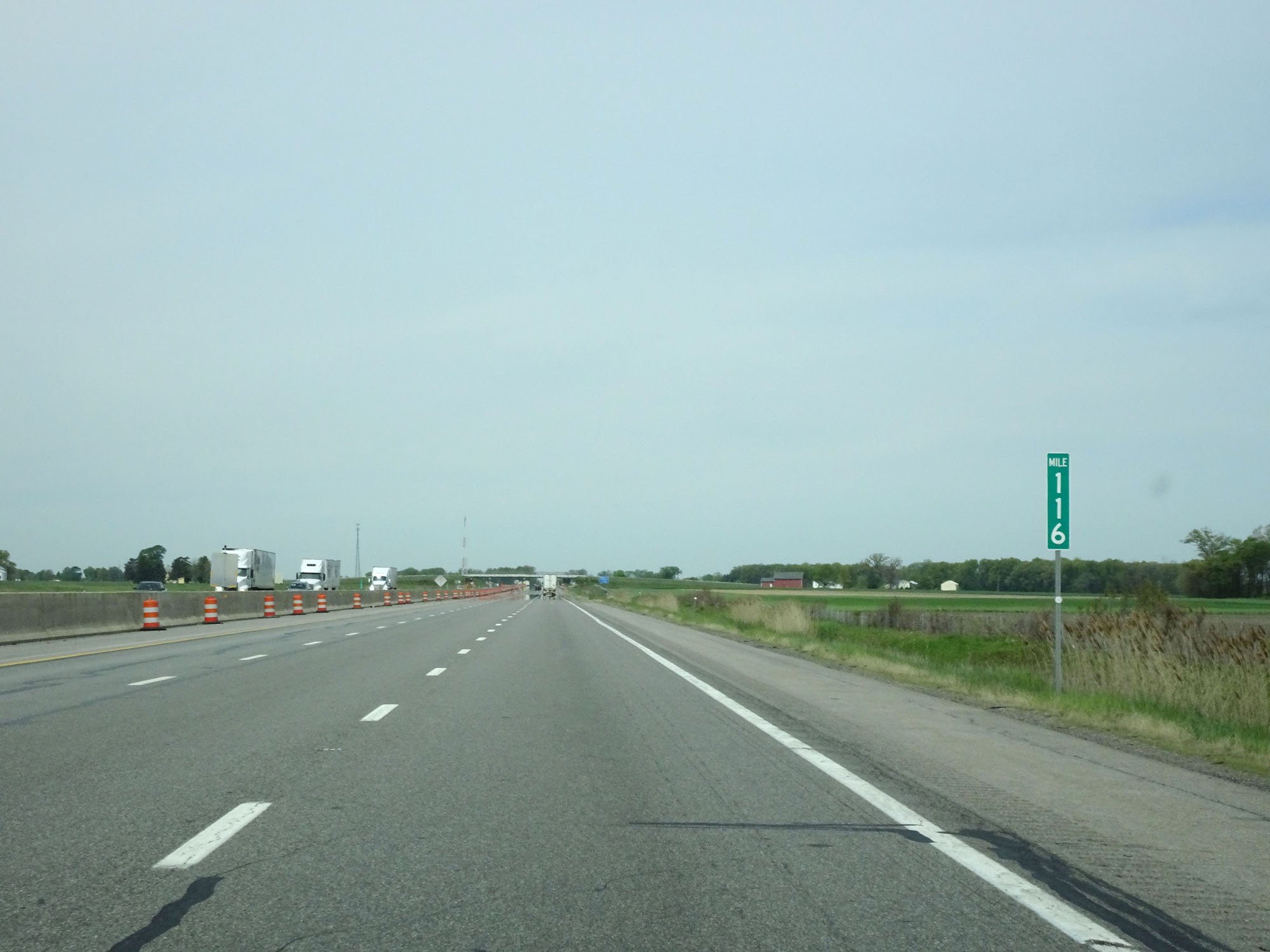 Interstate 80 / Interstate 90 West (Ohio Turnpike) at mile marker 116.  (Photo taken 5/20/16).