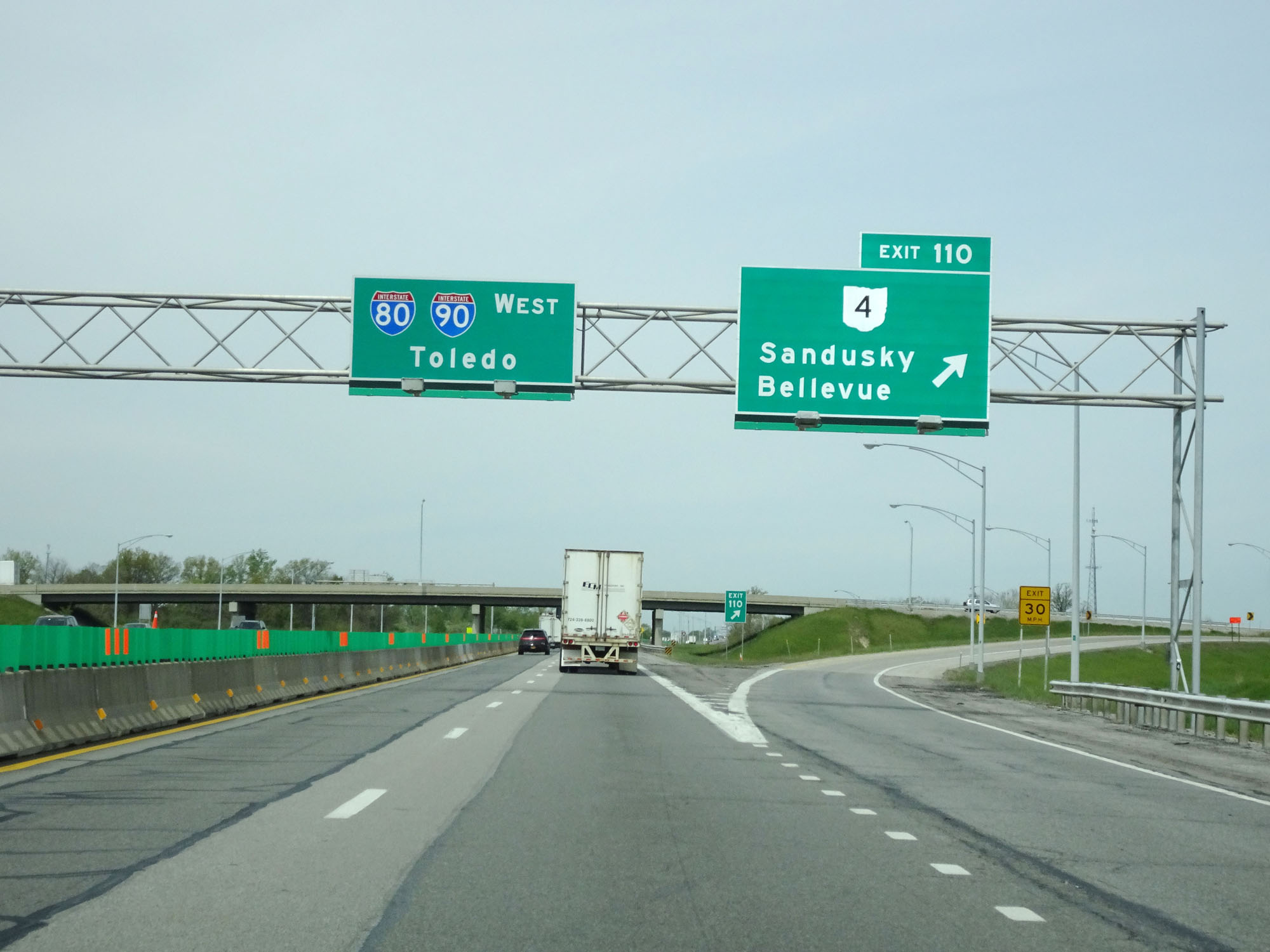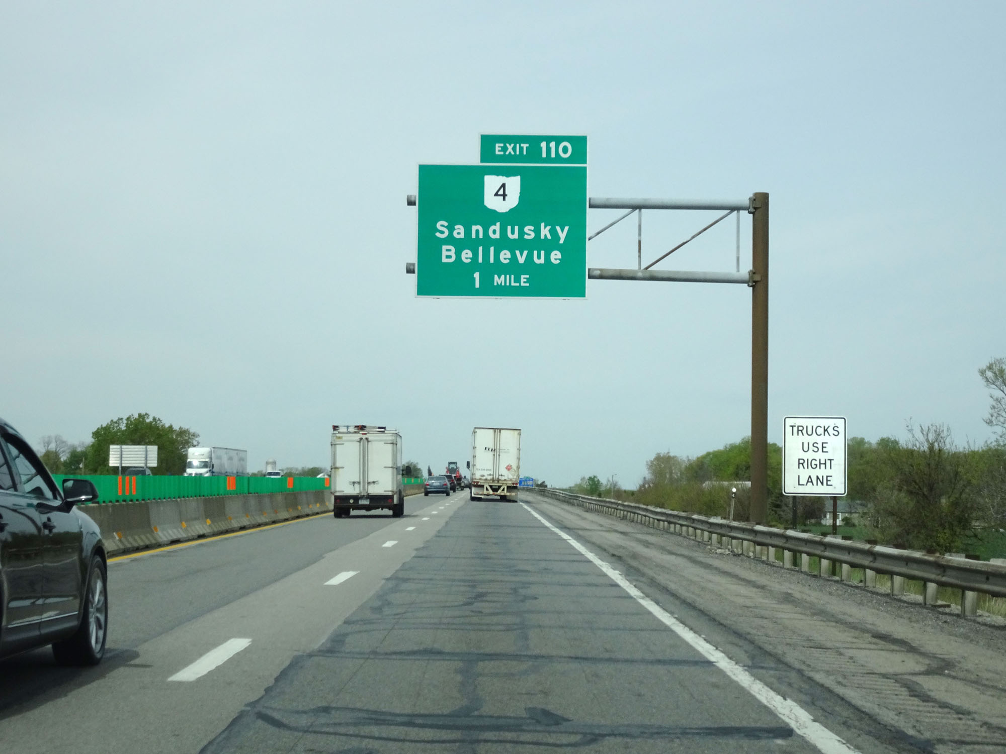 Interstate 80 / Interstate 90 West (Ohio Turnpike) at Exit 110: OH 4 - Sandusky / Bellevue  (Photo taken 5/20/16).