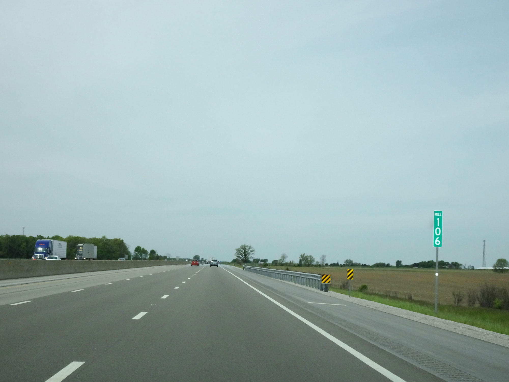 Interstate 80 / Interstate 90 West (Ohio Turnpike) at mile marker 106.  (Photo taken 5/20/16).