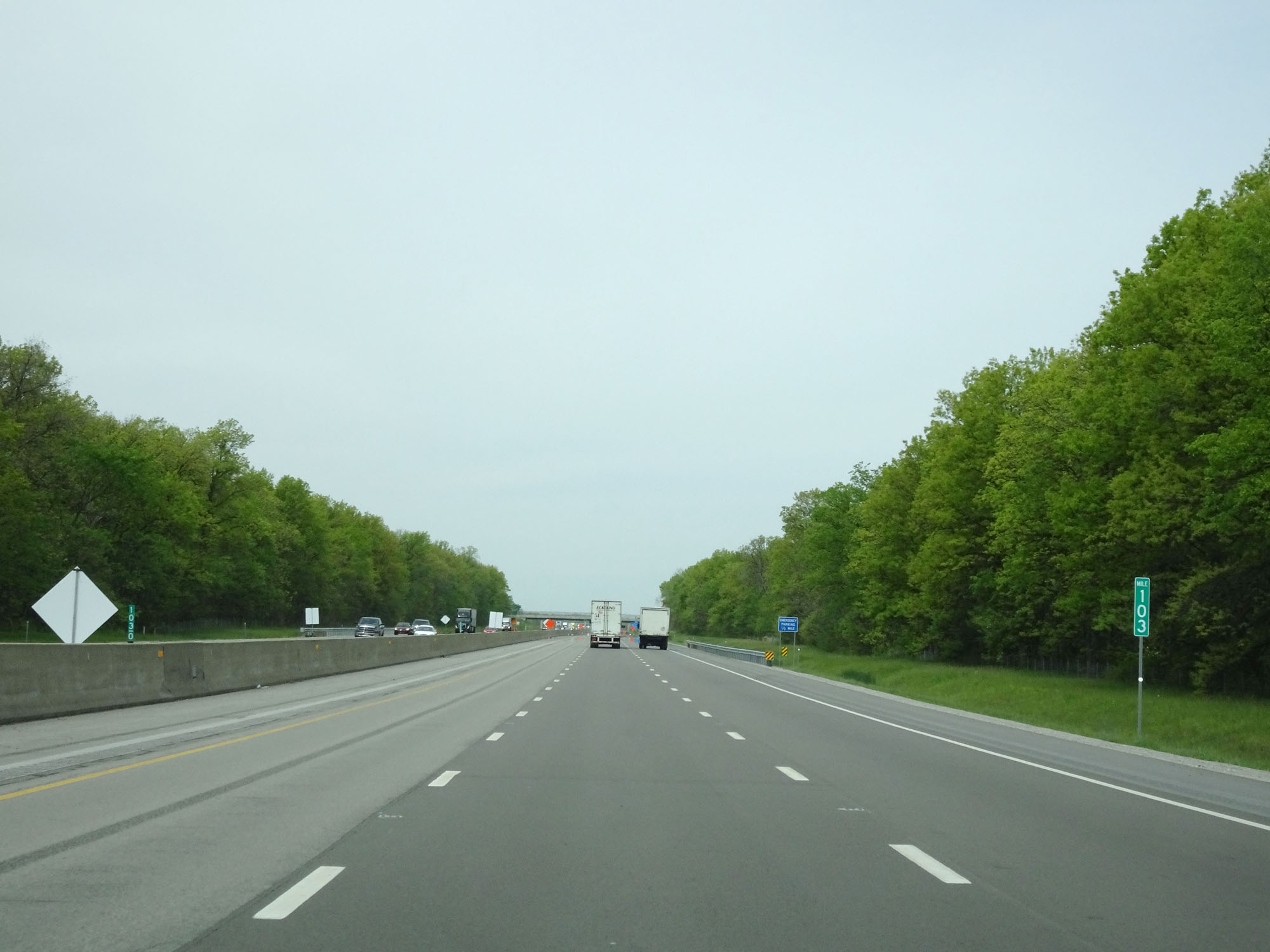 Interstate 80 / Interstate 90 West (Ohio Turnpike) at mile marker 103.  (Photo taken 5/20/16).