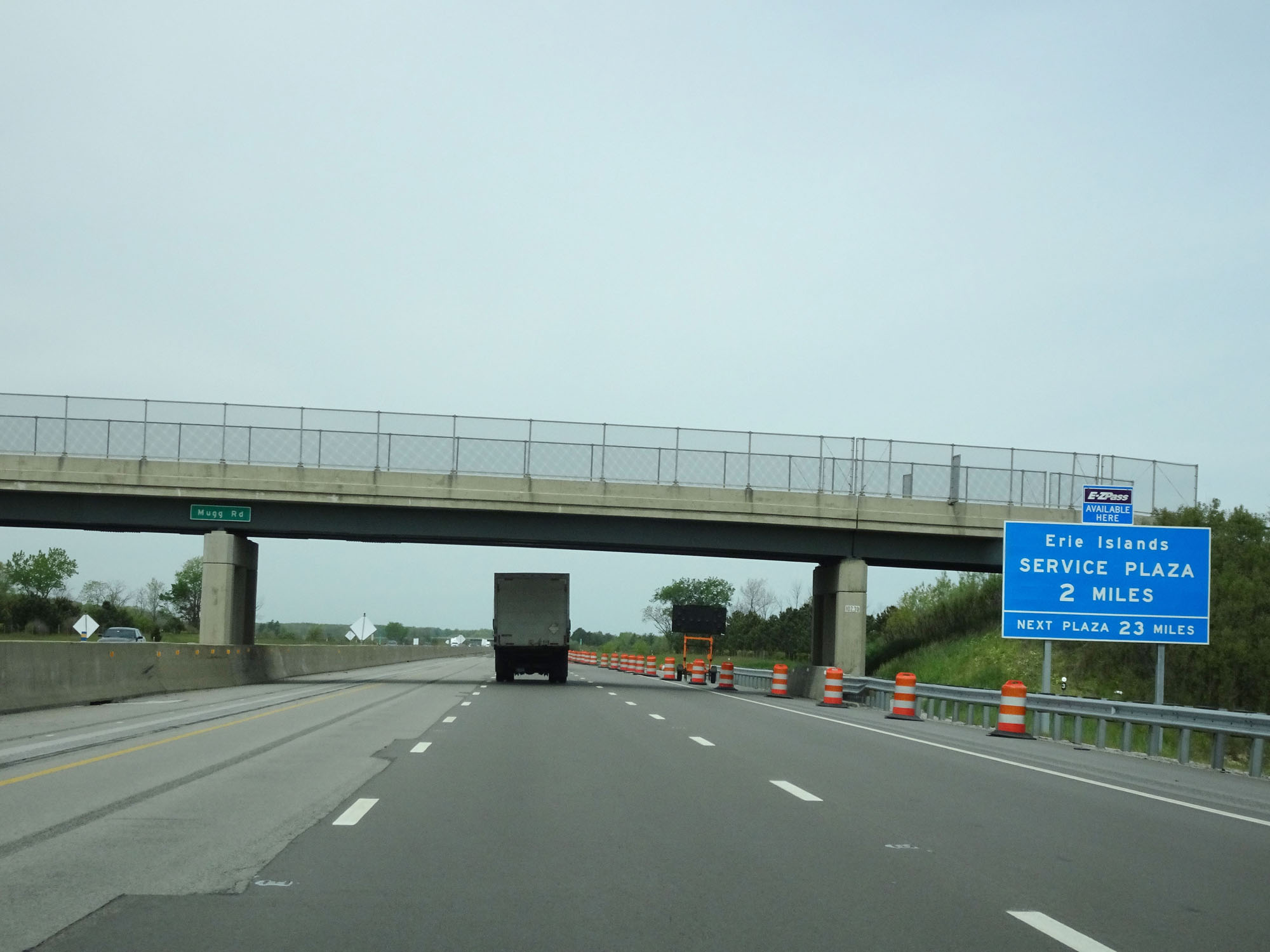 Interstate 80 / Interstate 90 West (Ohio Turnpike) approaching the Erie Islands Service Plaza - 2 miles.  (Photo taken 5/20/16).