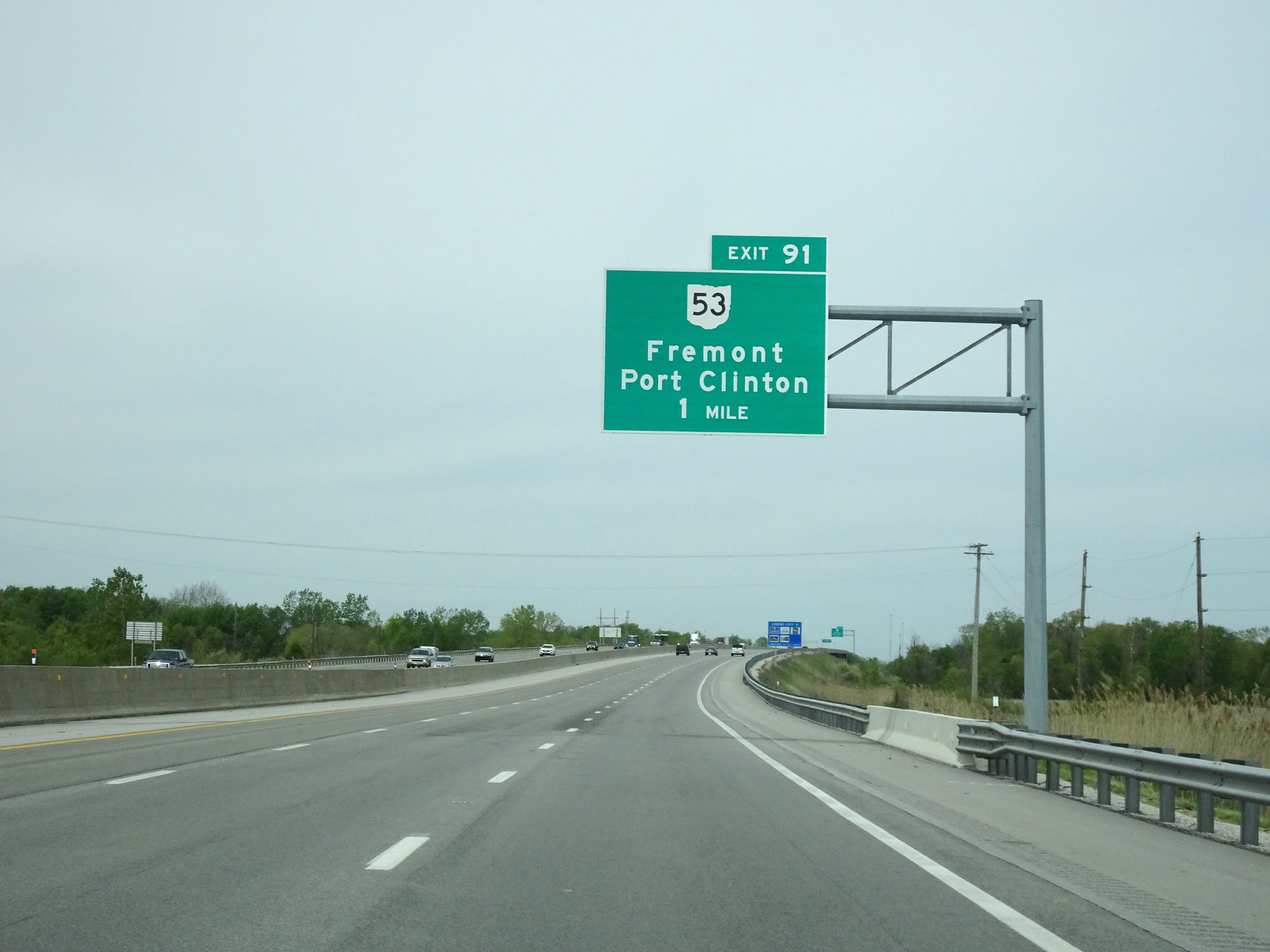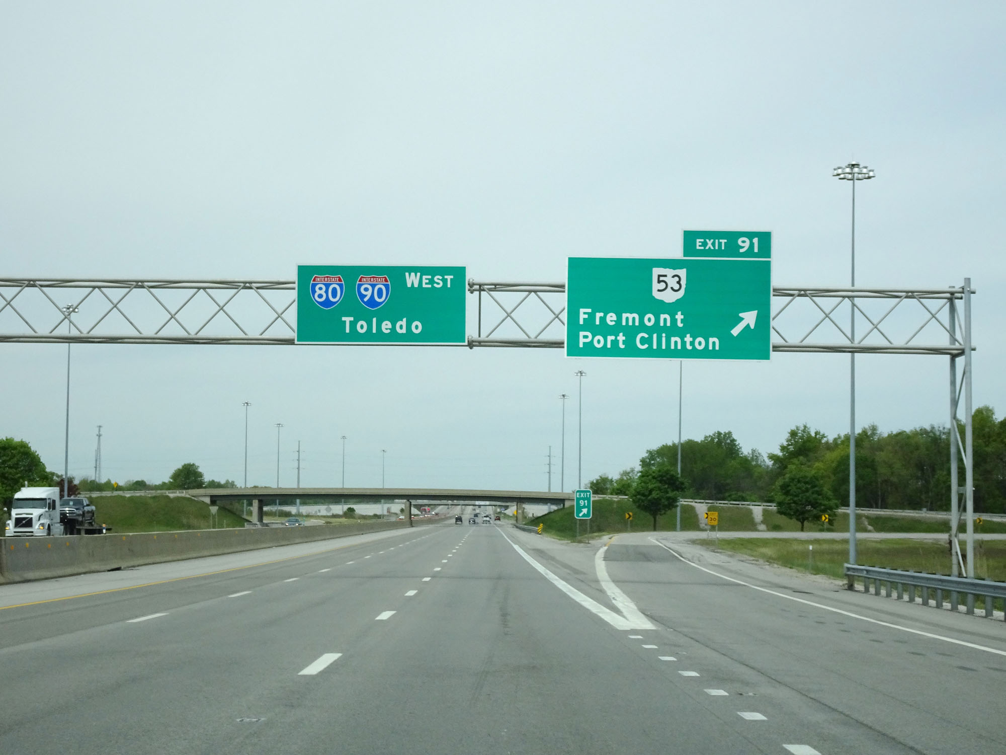 Interstate 80 / Interstate 90 West (Ohio Turnpike) at Exit 91: OH 53 - Fremont / Port Clinton  (Photo taken 5/20/16).