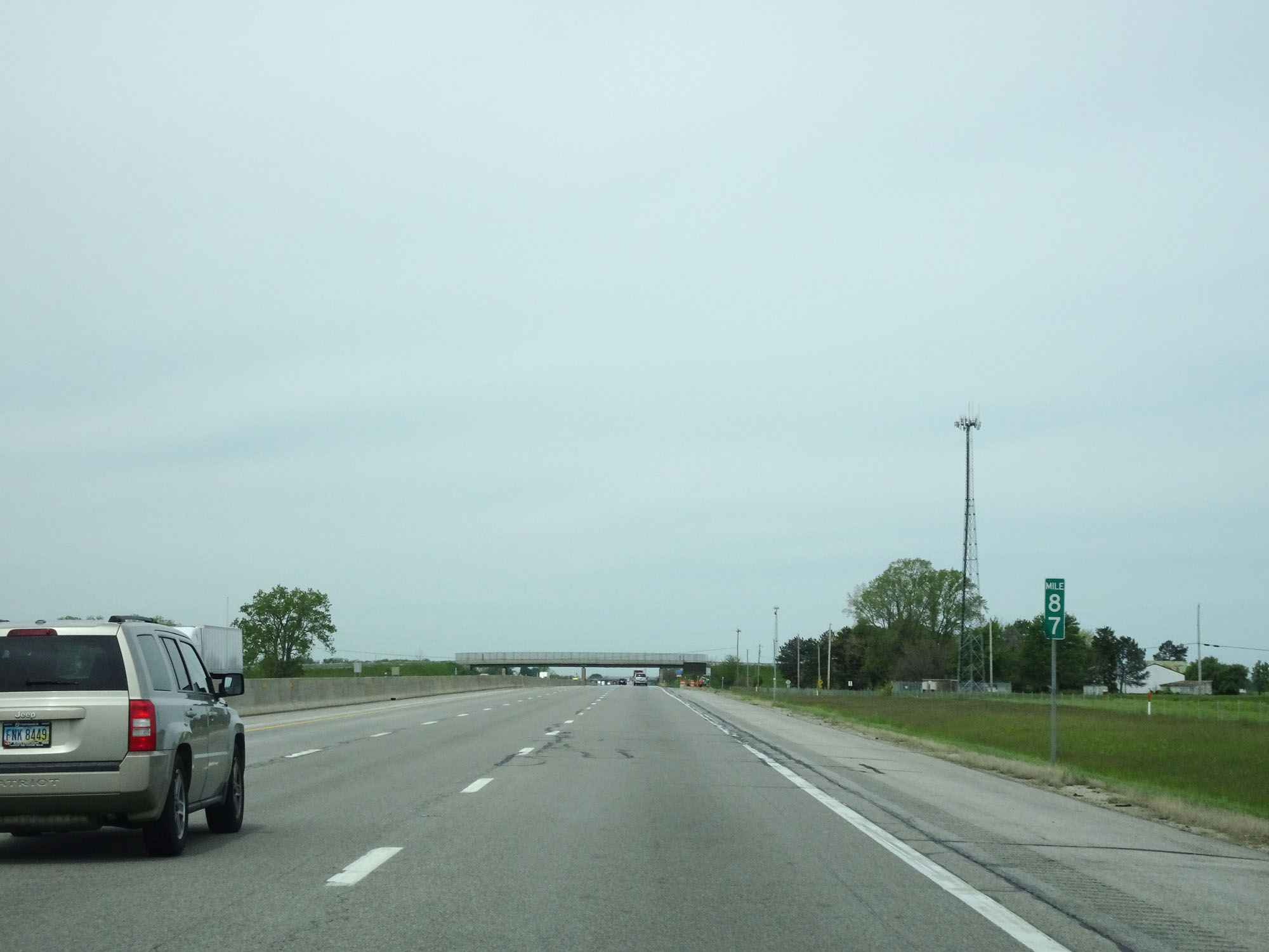 Interstate 80 West (Ohio Turnpike) at mile marker 205.  (Photo taken 5/20/16).