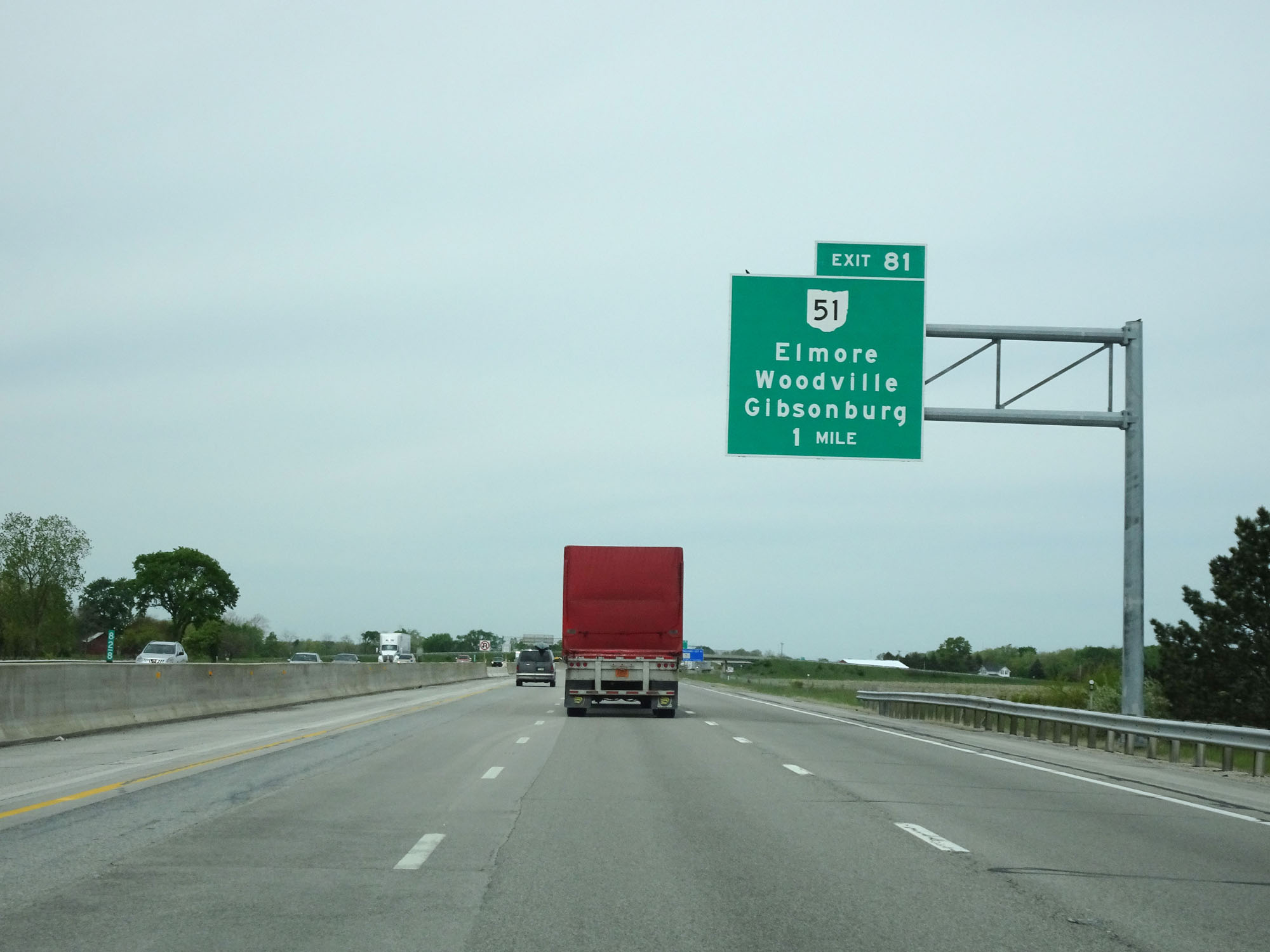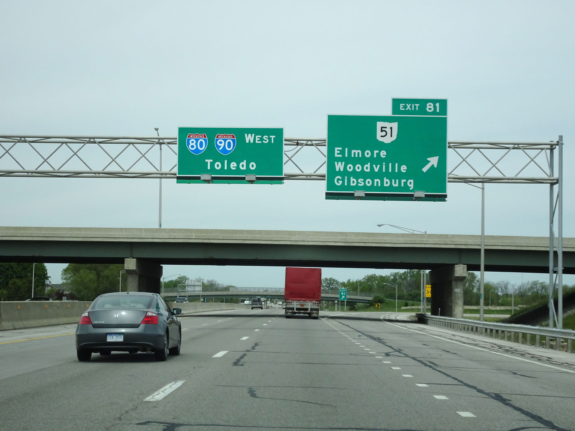 Interstate 80 / Interstate 90 West (Ohio Turnpike) at Exit 81: OH 51 - Elmore / Woodville / Gibsonburg  (Photo taken 5/20/16).