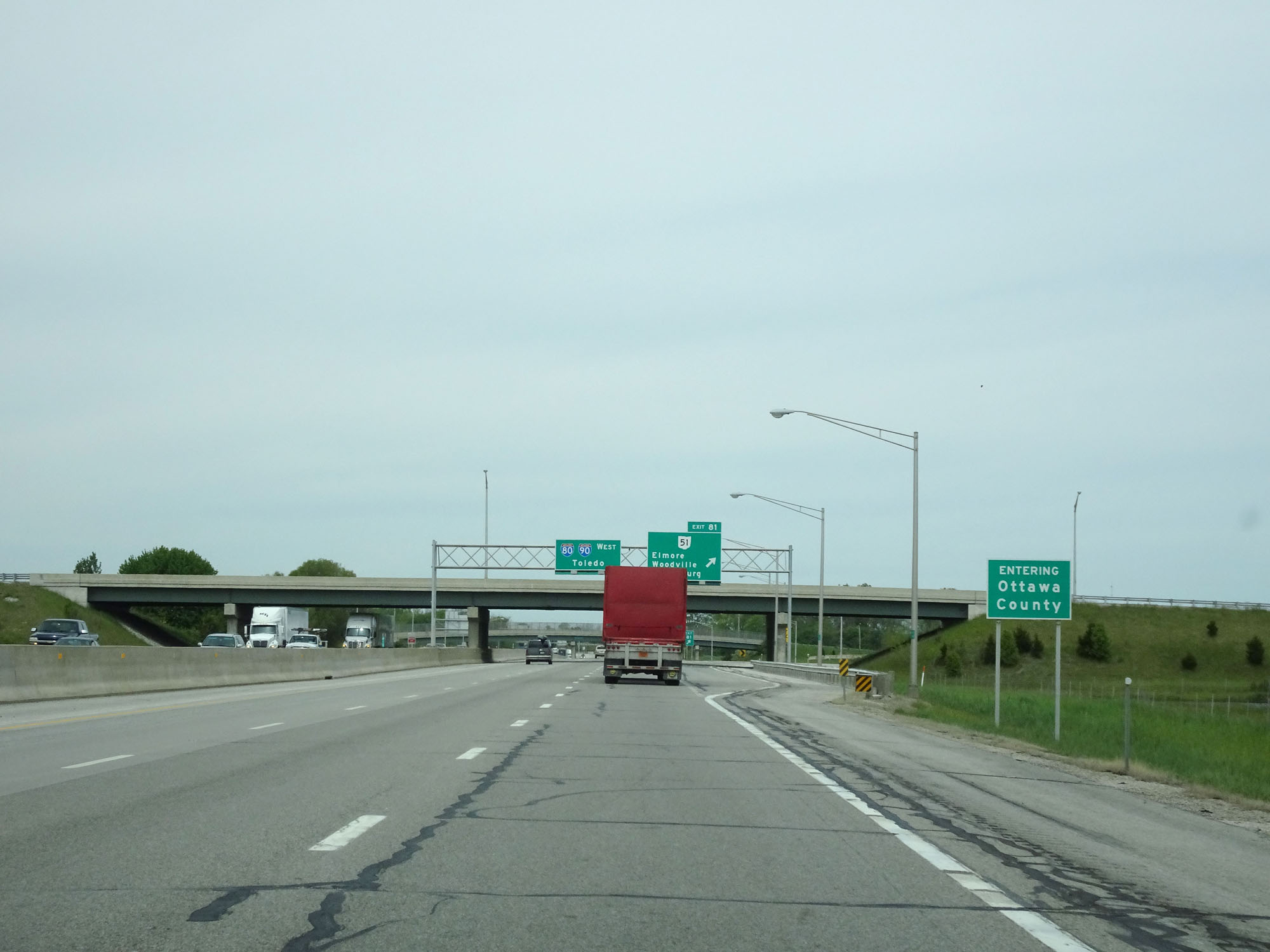 Interstate 80 / Interstate 90 West (Ohio Turnpike) entering Ottawa County.  (Photo taken 5/20/16).