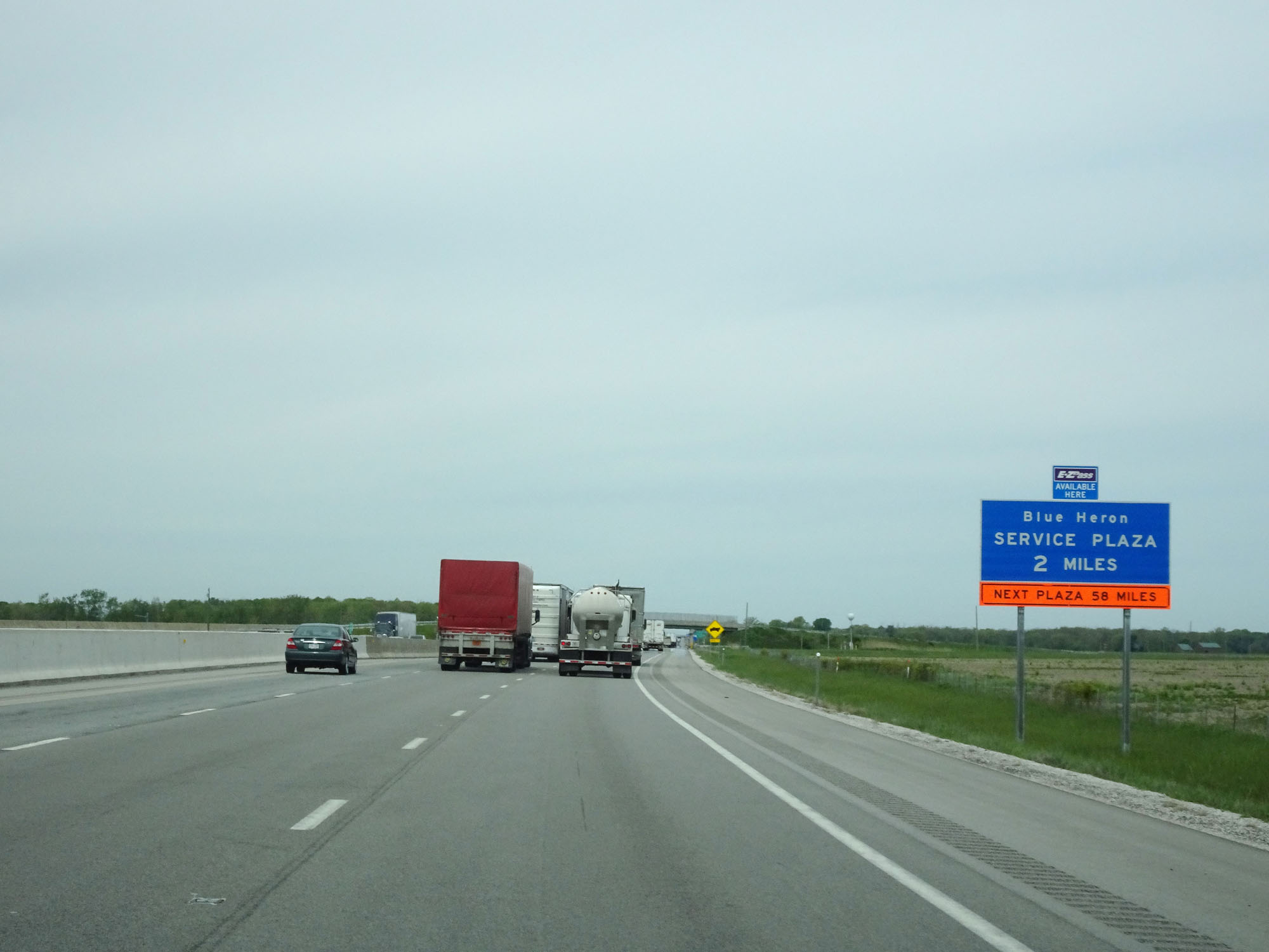 Interstate 80 / Interstate 90 West (Ohio Turnpike) approaching the Blue Heron Service Plaza - 2 miles.  (Photo taken 5/20/16).