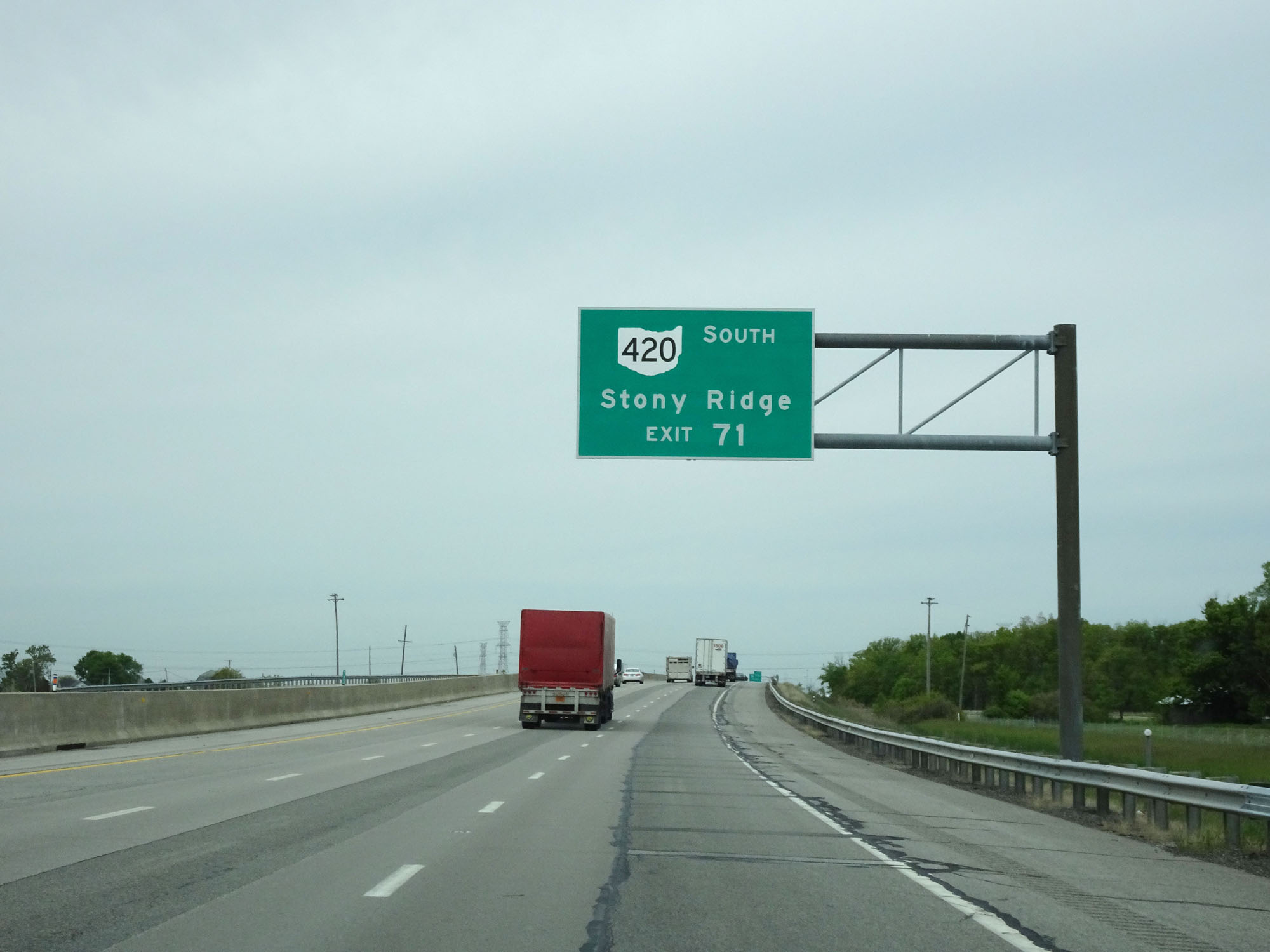 Take Exit 71 to OH 420 South toward Stony Ridge.  (Photo taken 5/20/16).