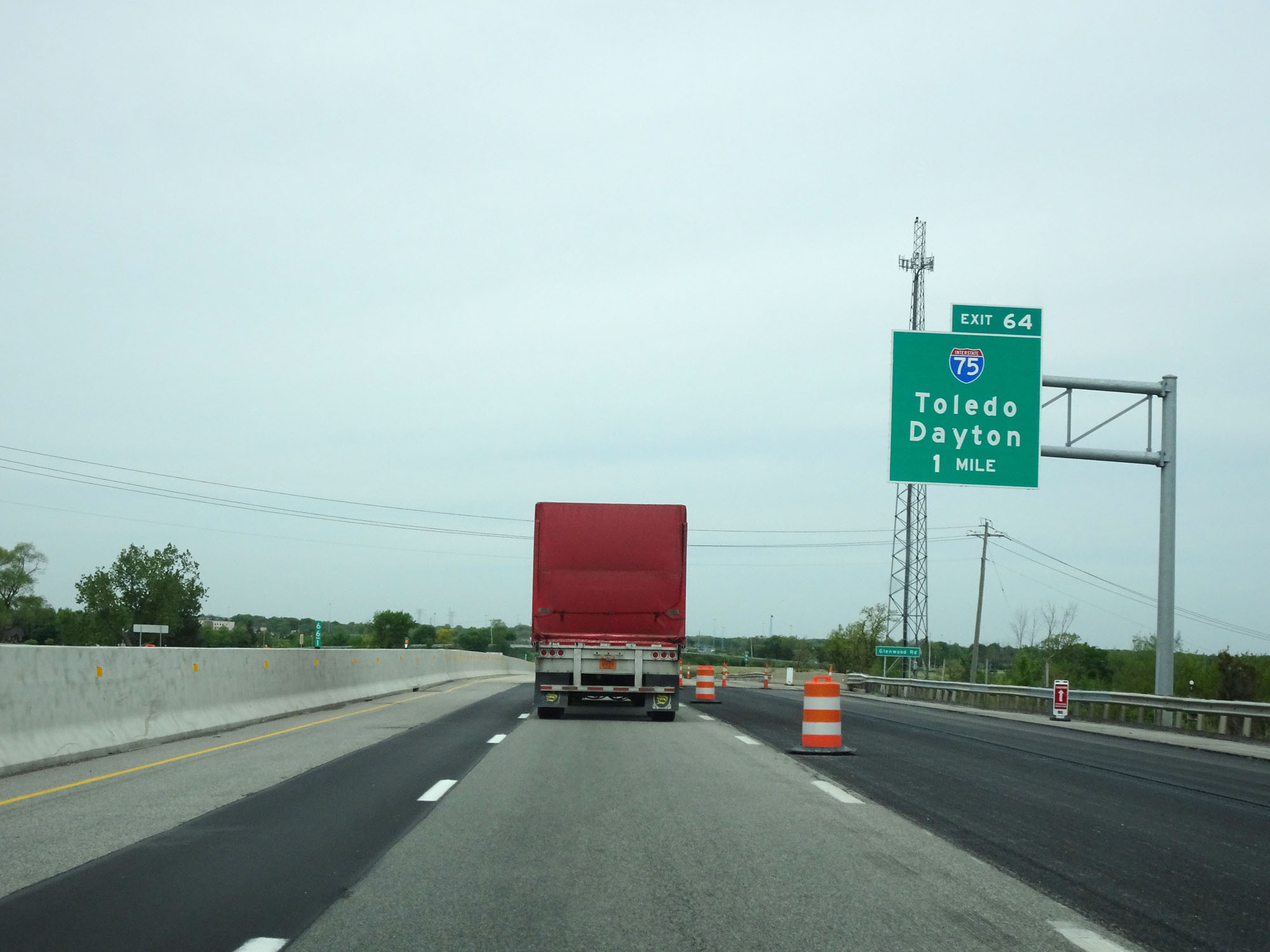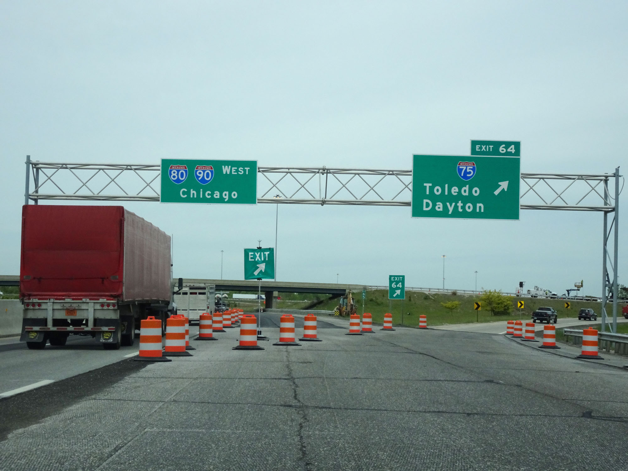 Interstate 80 / Interstate 90 West (Ohio Turnpike) at Exit 64: Interstate 75 - Toledo / Dayton  (Photo taken 5/20/16).