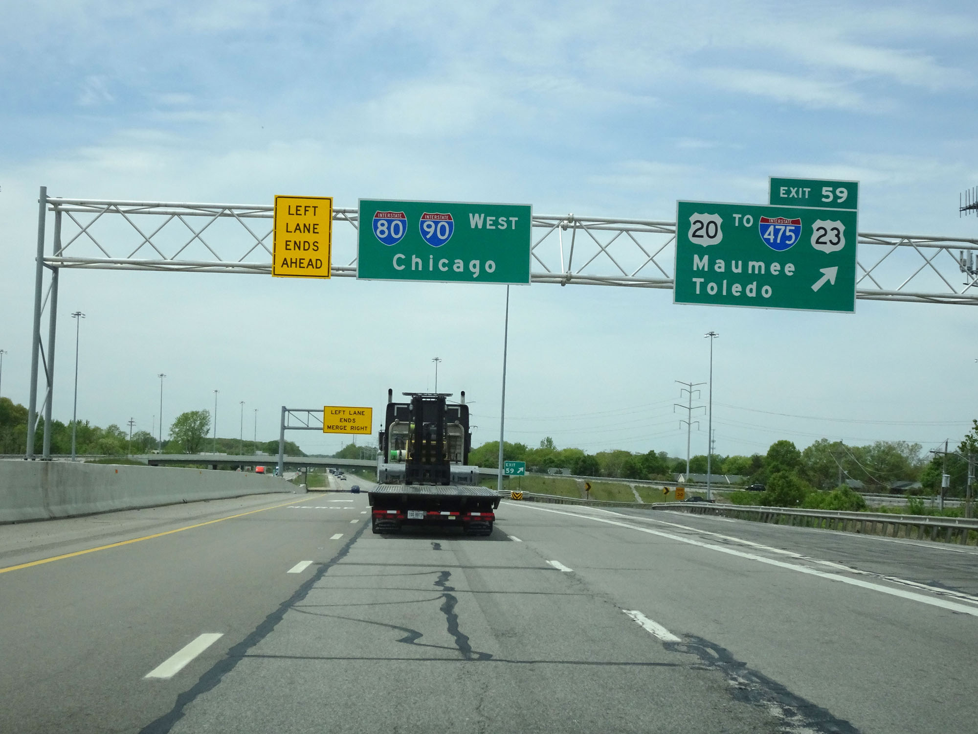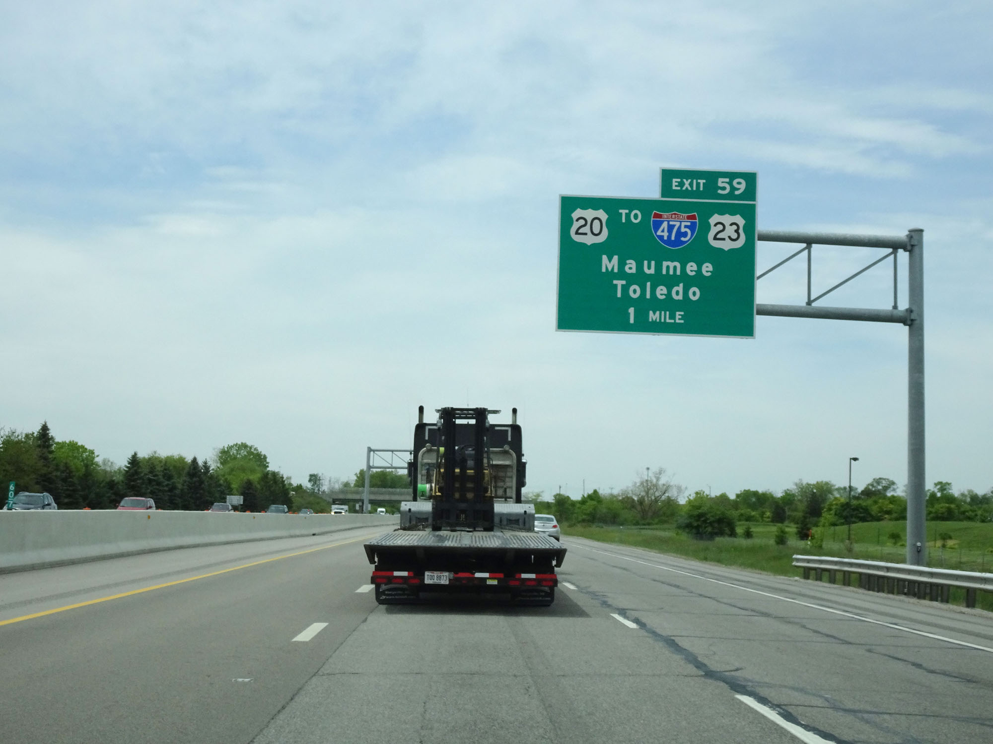 Interstate 80 / Interstate 90 West (Ohio Turnpike) at Exit 59: US 20 / To Interstate 475 / To US 23 - Maumee / Toledo  (Photo taken 5/20/16).