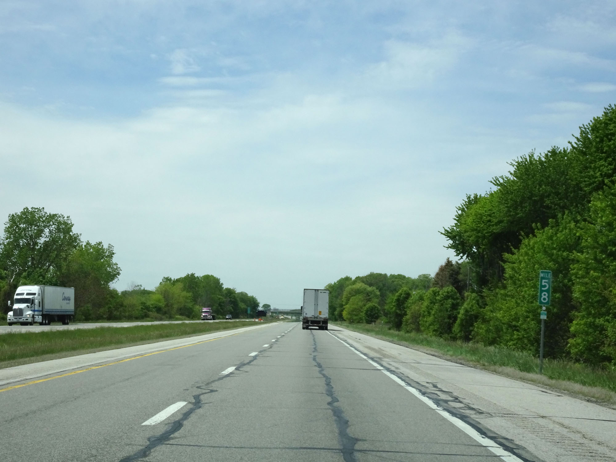 Interstate 80 / Interstate 90 West (Ohio Turnpike) at mile marker 58.  (Photo taken 5/20/16).
