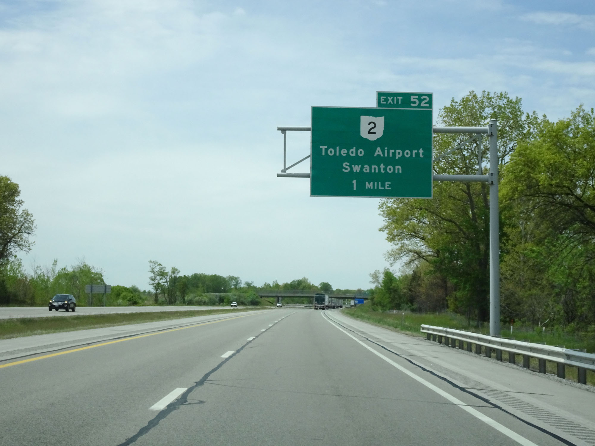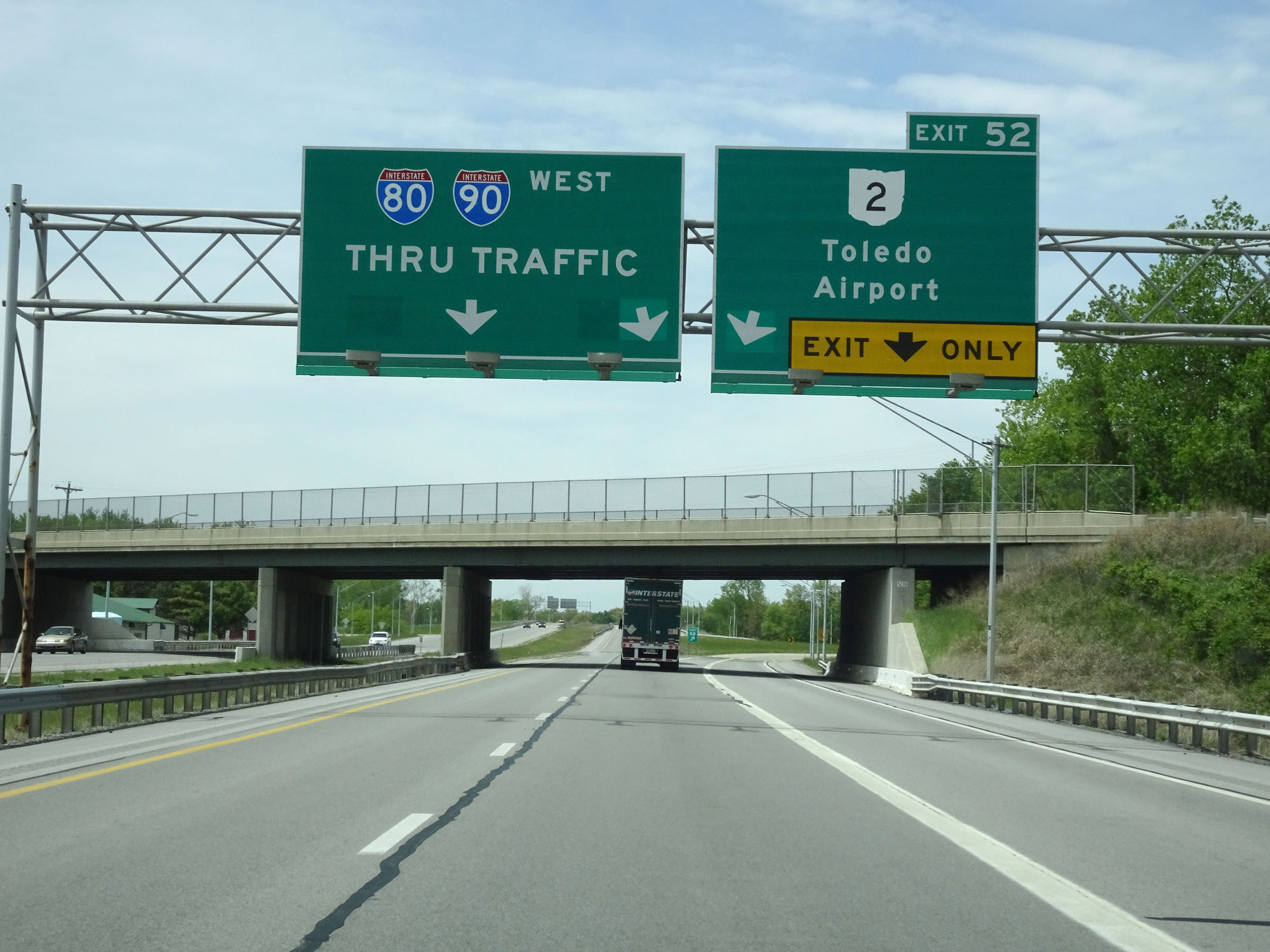Interstate 80 / Interstate 90 West (Ohio Turnpike) at Exit 52: OH 2 - Toledo Airport / Swanton  (Photo taken 5/20/16).