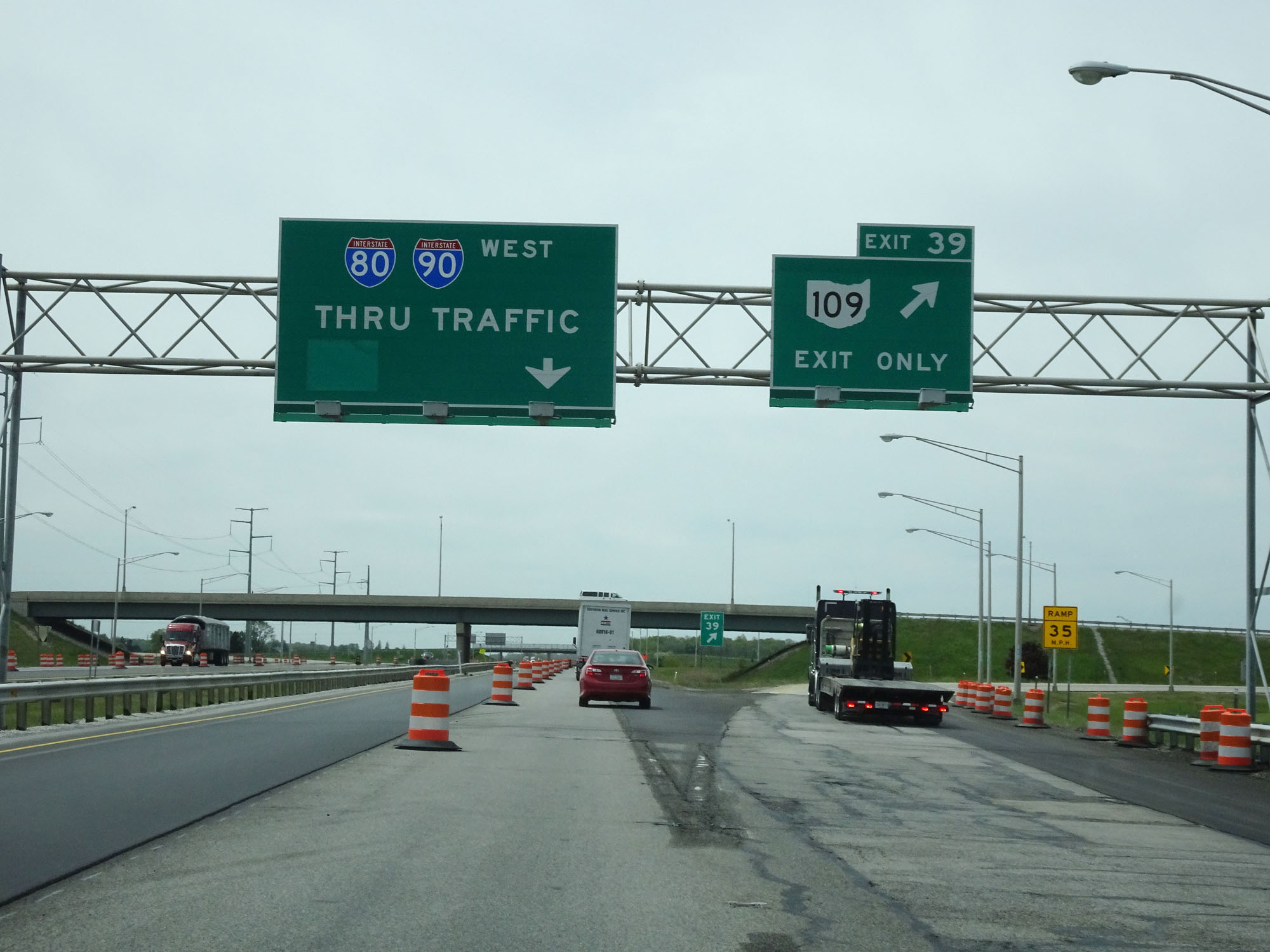 Interstate 80 / Interstate 90 West (Ohio Turnpike) at Exit 39: OH 109 - Delta / Lyons  (Photo taken 5/20/16).